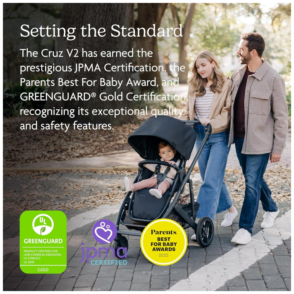 O CRUZ é feito com a combinação de alumínio e magnésio, proporcionando um desempenho ideal, leve e durável. Ele possui proteção contra todas as intempéries, incluindo chuva e insetos, e é adequado desde o nascimento com o acessório Infant SnugSeat ou berço. O assento reversível de tamanho completo permite que seu filho em crescimento ande para frente, para trás, completamente ereto, reclinado e em qualquer lugar entre.