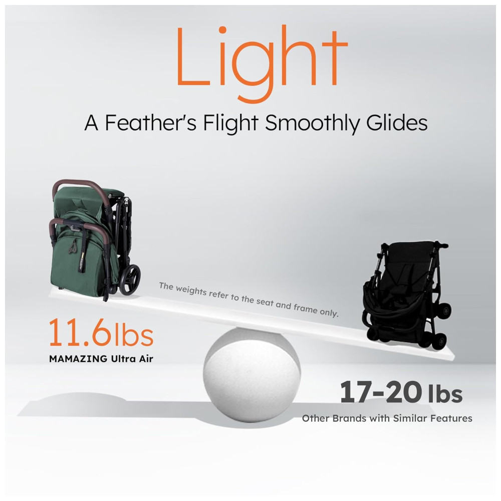 Carrinho de Bebê de Viagem Leve MAMAZING – Premiado Ouro Moms Choice Compacto e Amigo do Avião Design Dobrável com Uma Mão 52 kg Ideal para Passeios