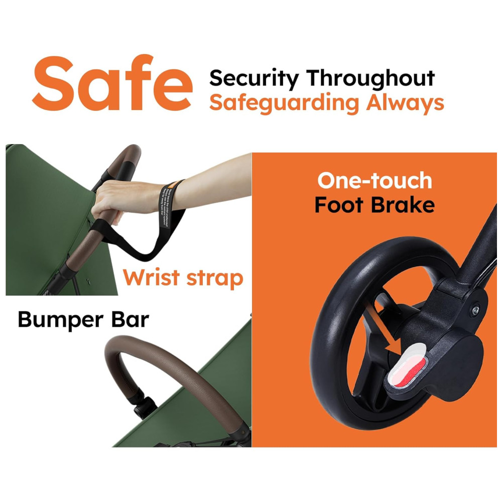 Diga adeus aos carrinhos volumosos que tornam as viagens uma dor de cabeça. O carrinho de bebê da MAMAZING possui um design compacto que se dobra facilmente para um tamanho reduzido. Com apenas 5,2 kg, graças à sua estrutura avançada de fibra de carbono, garante uma experiência sem complicações onde quer que você vá. Este material inovador não só oferece durabilidade excepcional, como também permite uma construção incrivelmente leve, facilitando o armazenamento em porta-malas ou compartimentos de bagagem em aviões. O sistema de dobra e desdobra é amigável para o usuário, sem mecanismos complexos, facilitando a transição do passeio para o armazenamento. Proteção solar e conforto são prioridades. O Carrinho Ultra Air possui um toldo com proteção UV que protege seu pequeno dos raios solares nocivos, proporcionando um refúgio fresco e sombreado para relaxar. O toldo ajustável com proteção UPF 50 pode ser facilmente posicionado para diferentes ângulos de sol, permitindo criar o local sombreado perfeito enquanto explora locais ao ar livre. Com amplo espaço de armazenamento, incluindo uma cesta espaçosa sob o assento, este carrinho compacto para crianças pequenas pode acomodar facilmente fraldas, brinquedos, lanches e muito mais. Priorizando a segurança do seu filho, apresenta um arnês de 5 pontos e sistema de freio acionado pelo pé. Adequado para bebês a partir de 6 meses até 22,7 kg e altura máxima de 100 cm. Atende ou excede os mais altos padrões de segurança estabelecidos pela CPSC e ASTM.