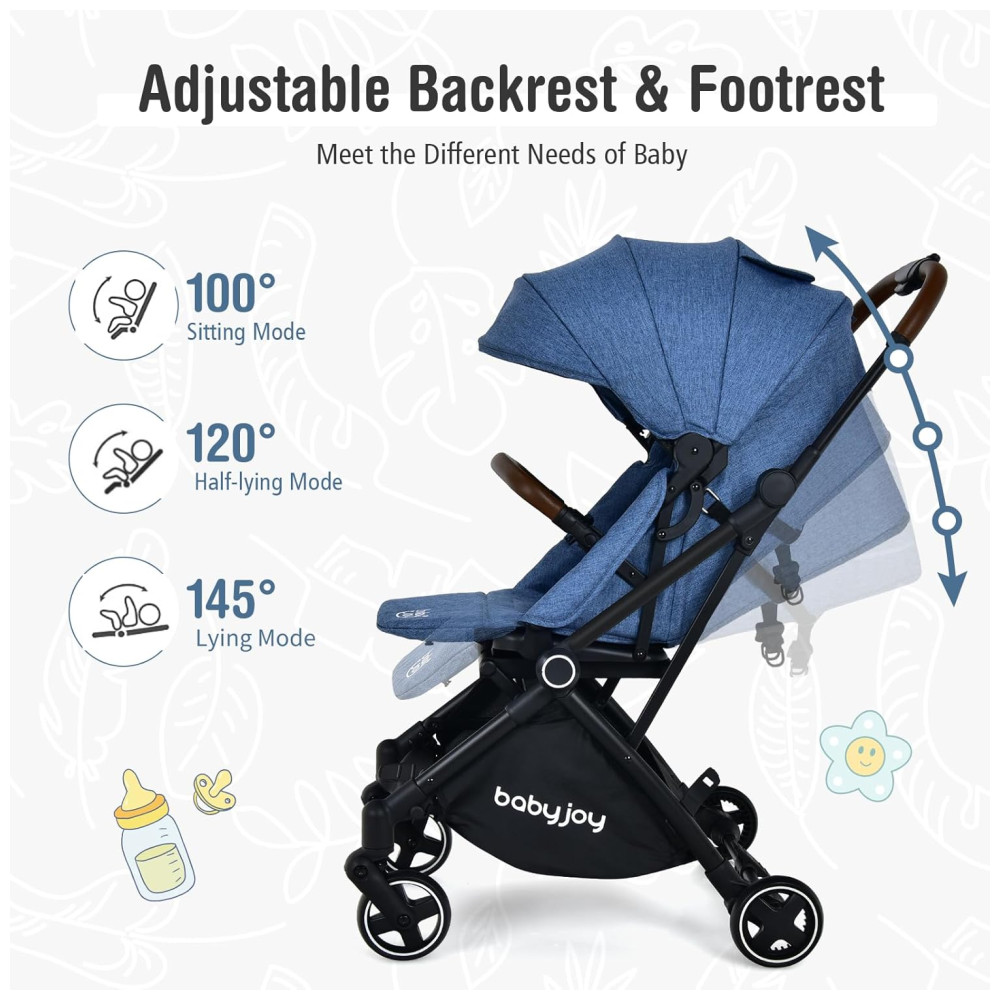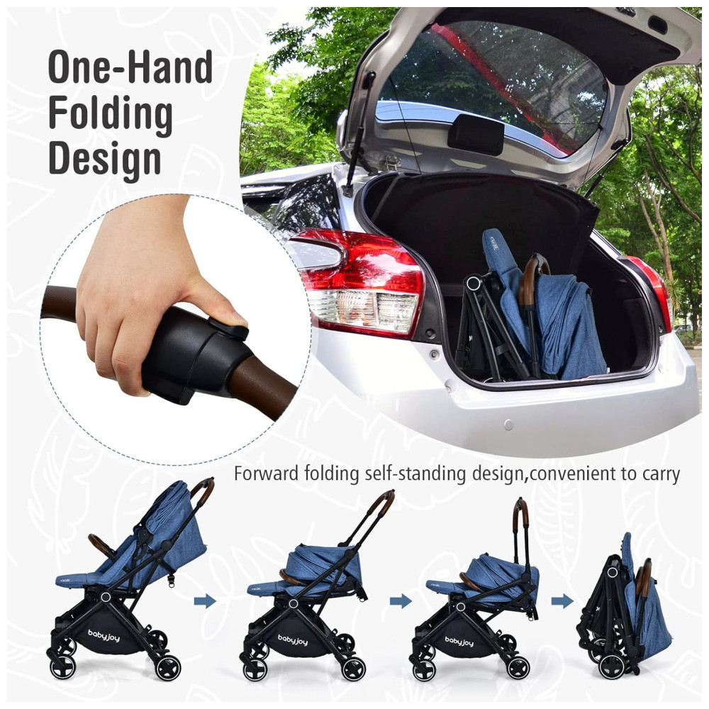 Carrinho de Bebê Dobrável com Assento Reversível Capota Ajustável e Arnês de Segurança de 5 Pontos BABY JOY Azul