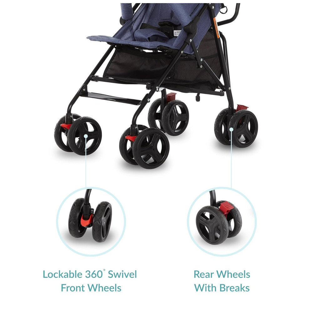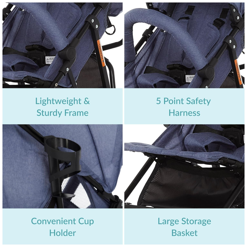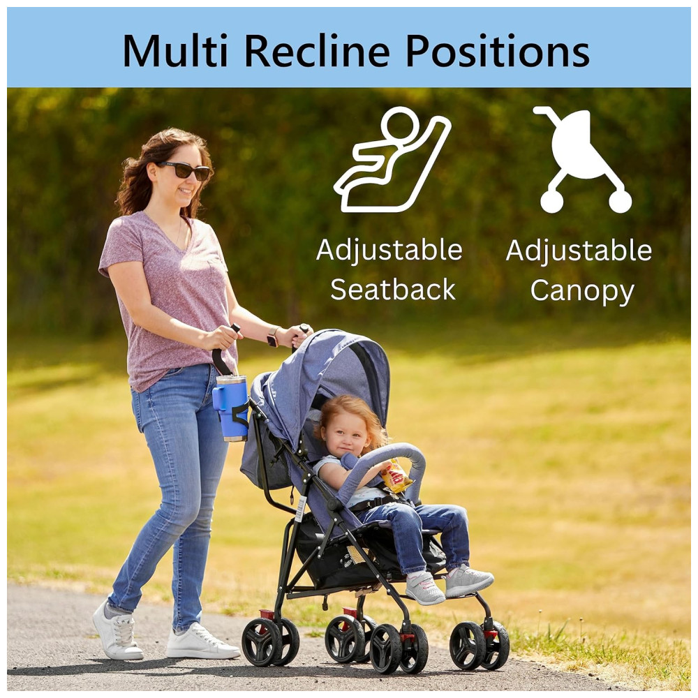 Carrinho de Bebê Dream On Me Vista Moonwalk Azul Leve e Compacto Reclinável em Diversas Posições Capota Amplo Cesto e Suporte para Bebidas