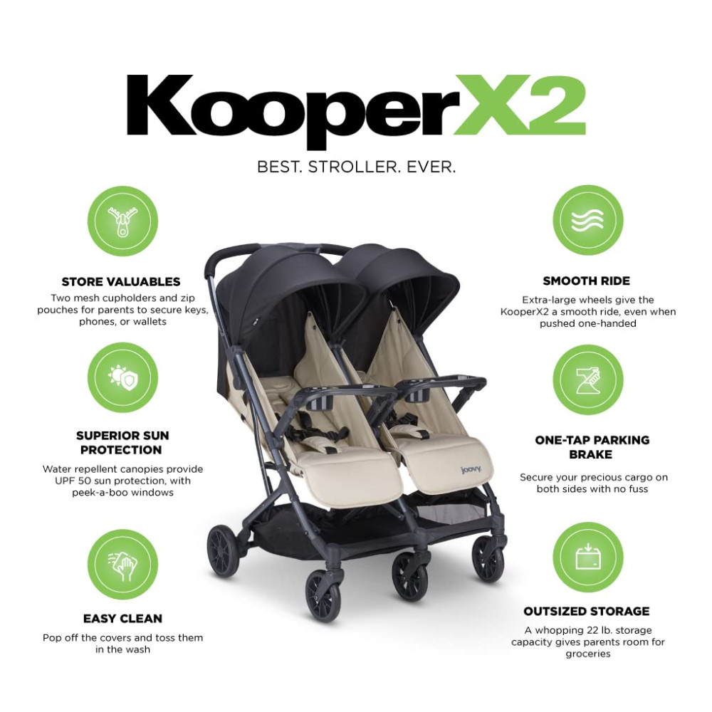 CONSTRUÍDO PARA A FAMÍLIA, PROJETADO PARA A VIDA Joovy acredita que pais felizes e saudáveis produzem filhos felizes e saudáveis e o KooperX2 foi projetado para ser um carrinho duplo compacto verdadeiramente portátil