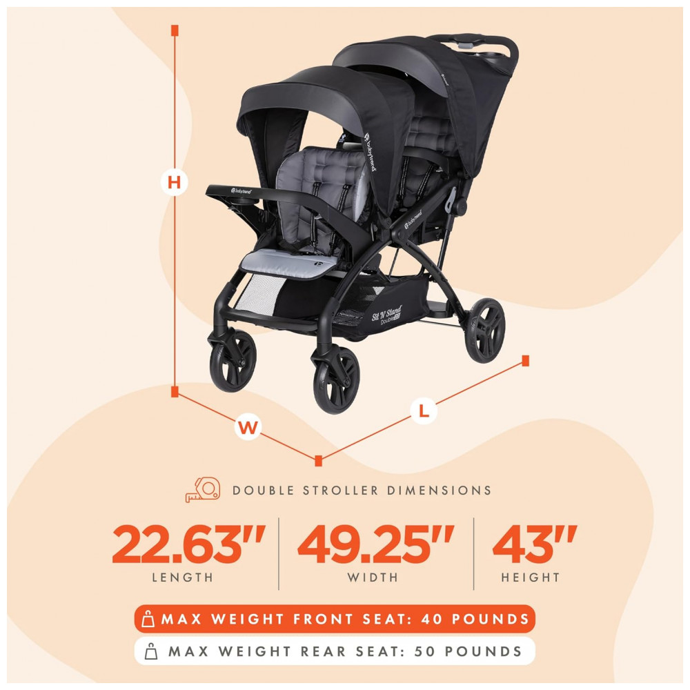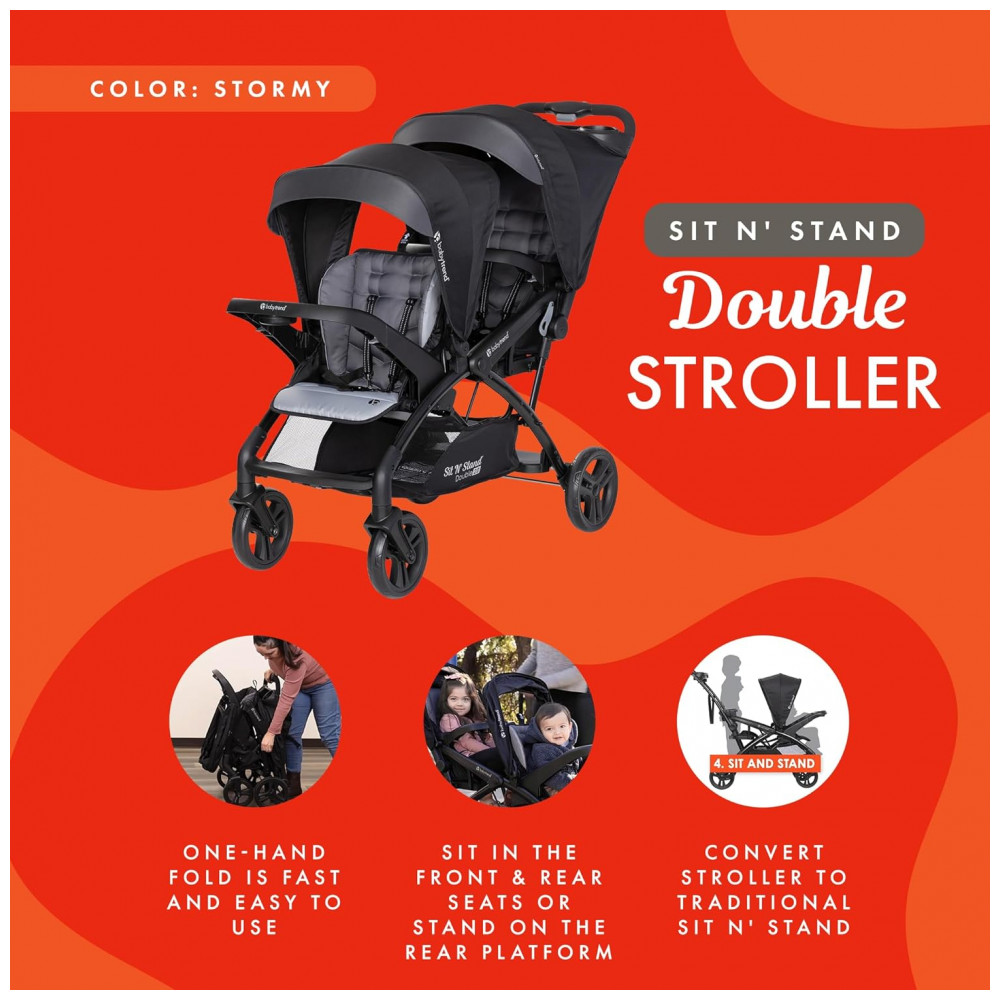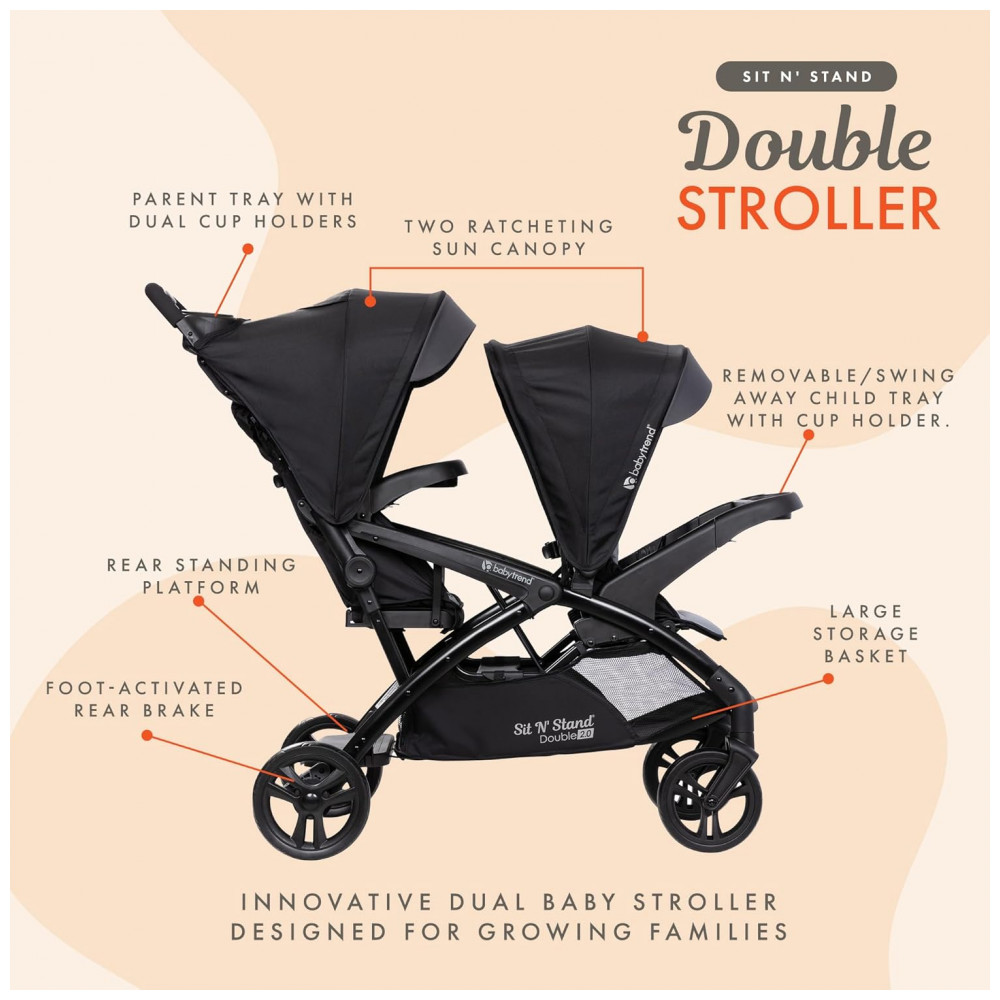 Carrinho de Bebê Duplo com Porta Copos Baby Trend Preto