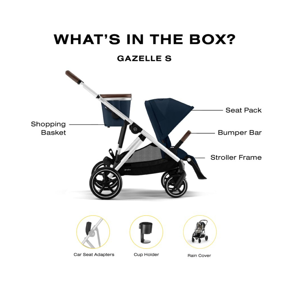 Carrinho de Bebê Duplo Modular com Mais de 20 Configurações e Inclui Cesto de Compras Removível Cybex Gazelle S Azul