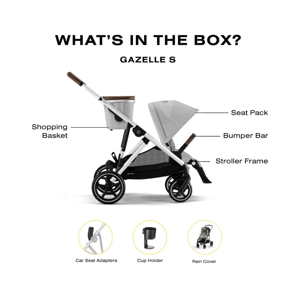O carrinho CYBEX Gazelle S é uma opção versátil e prática para famílias em crescimento. Com um cesto de compras removível que suporta até 11,34 quilos adicionais, você pode facilmente transportar suas compras enquanto passeia com seu filho. O carrinho pode ser convertido de simples para duplo sem a necessidade de adaptadores adicionais, graças à sua capacidade de adaptação às novas necessidades da sua família.