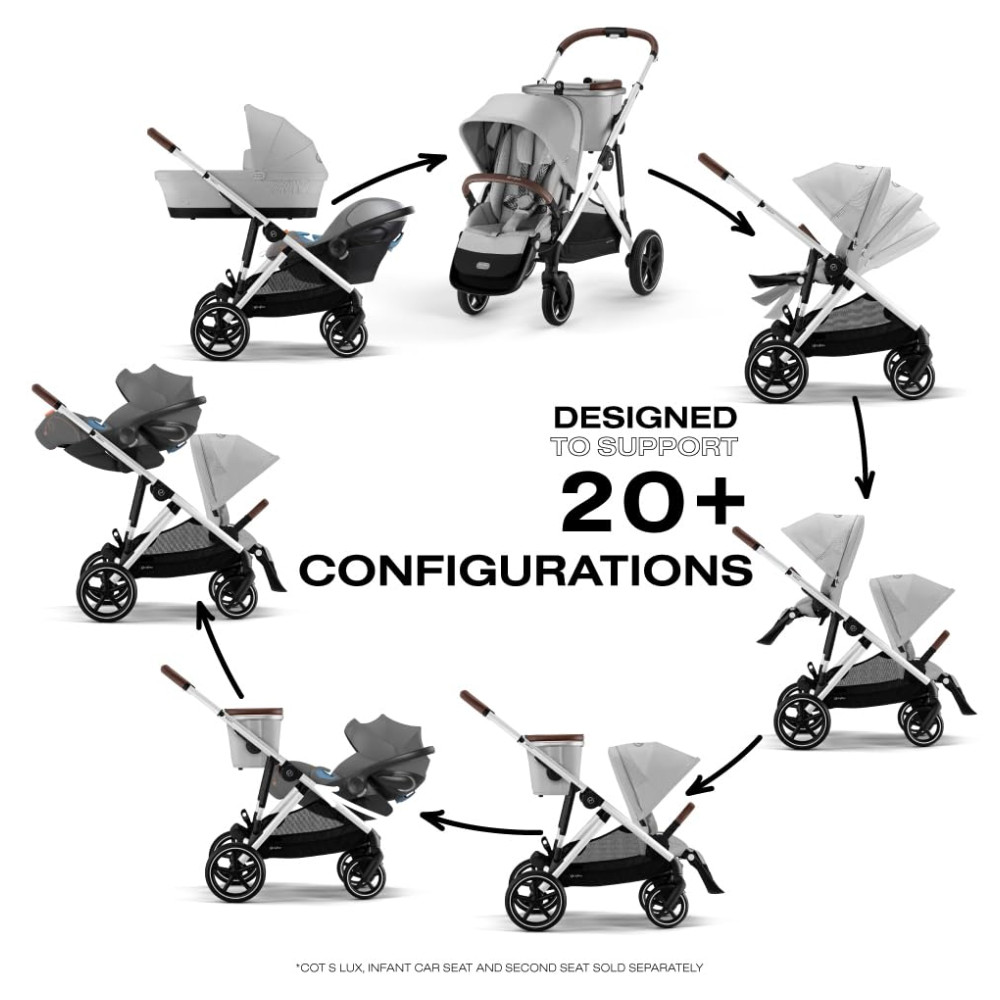 O assento reversível reclinável quase plano pode ser ajustado em 20 configurações diferentes, oferecendo conforto e segurança para o seu filho desde o nascimento. Além disso, o carrinho é compatível com os berços Gazelle S e todos os assentos infantis CYBEX.
