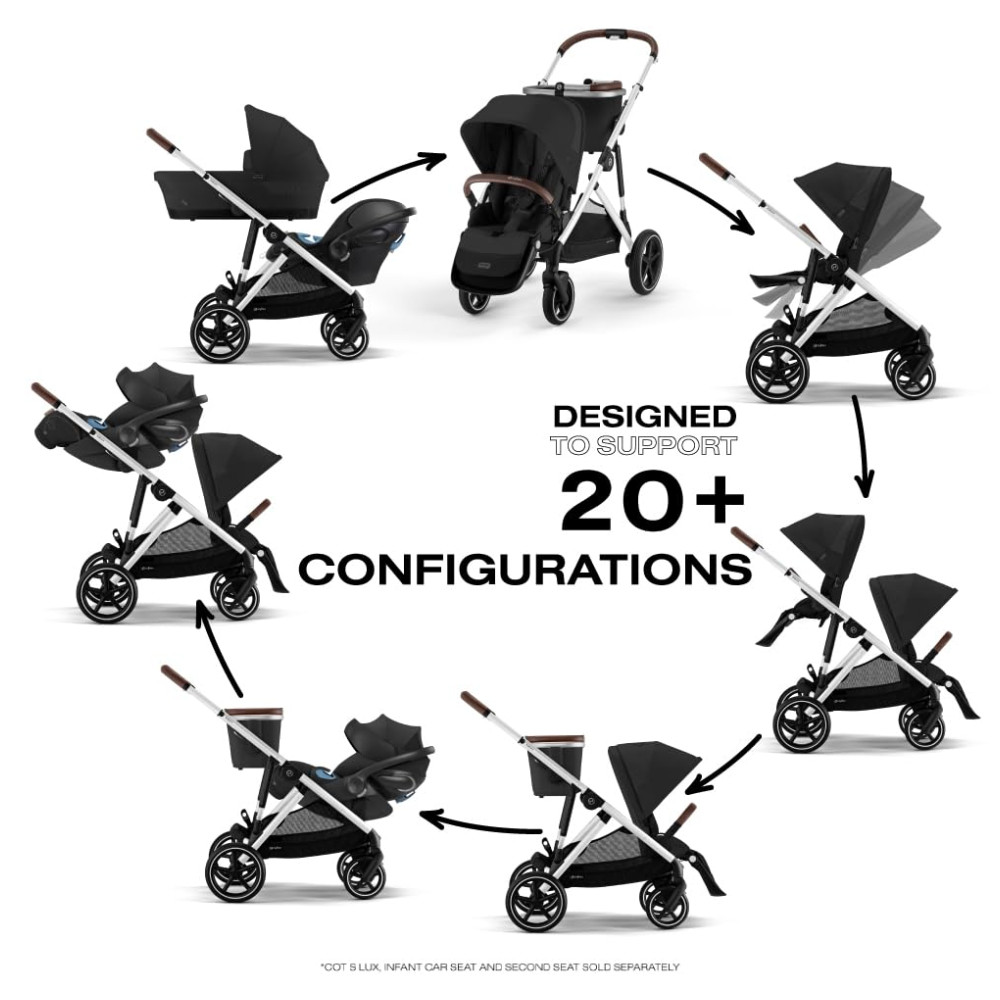 O assento reversível reclinável quase plano pode ser ajustado em 20 configurações diferentes, oferecendo conforto e segurança para o seu filho desde o nascimento. Além disso, o carrinho é compatível com os berços Gazelle S e todos os assentos infantis CYBEX.