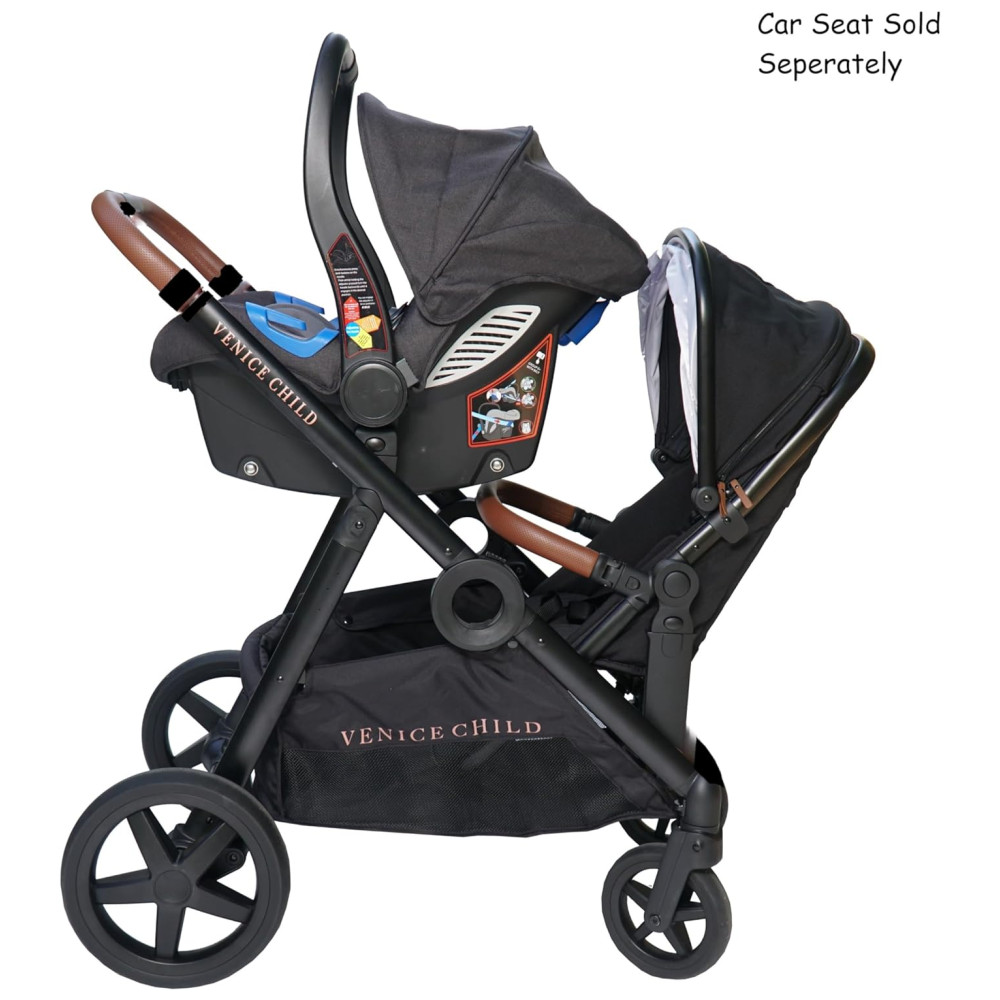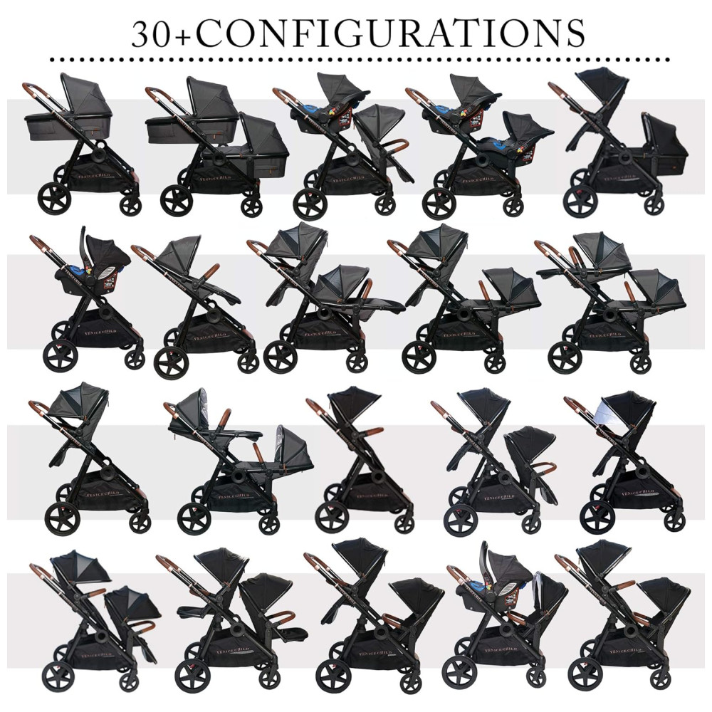 POSIÇÕES DO ASSENTO o assento do carro e o assento da criança podem ser s na frente ou na traseira. Feito com um tecido de proteção ultra UV e não tóxico. A caixa inclui todos os adaptadores necessários para conectar um assento de carro ou assento de criança nas posições frontal e traseira na estrutura do carrinho. Por favor, veja o vídeo em imagens para obter recursos adicionais.
