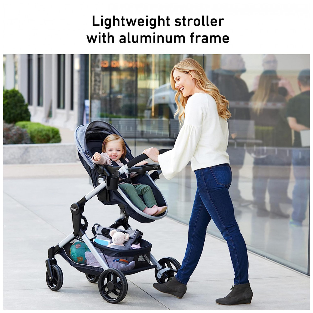 O carrinho aceita todos os assentos infantis Graco, para uma transição fácil do carro para o carrinho assento infantil vendido separadamente.