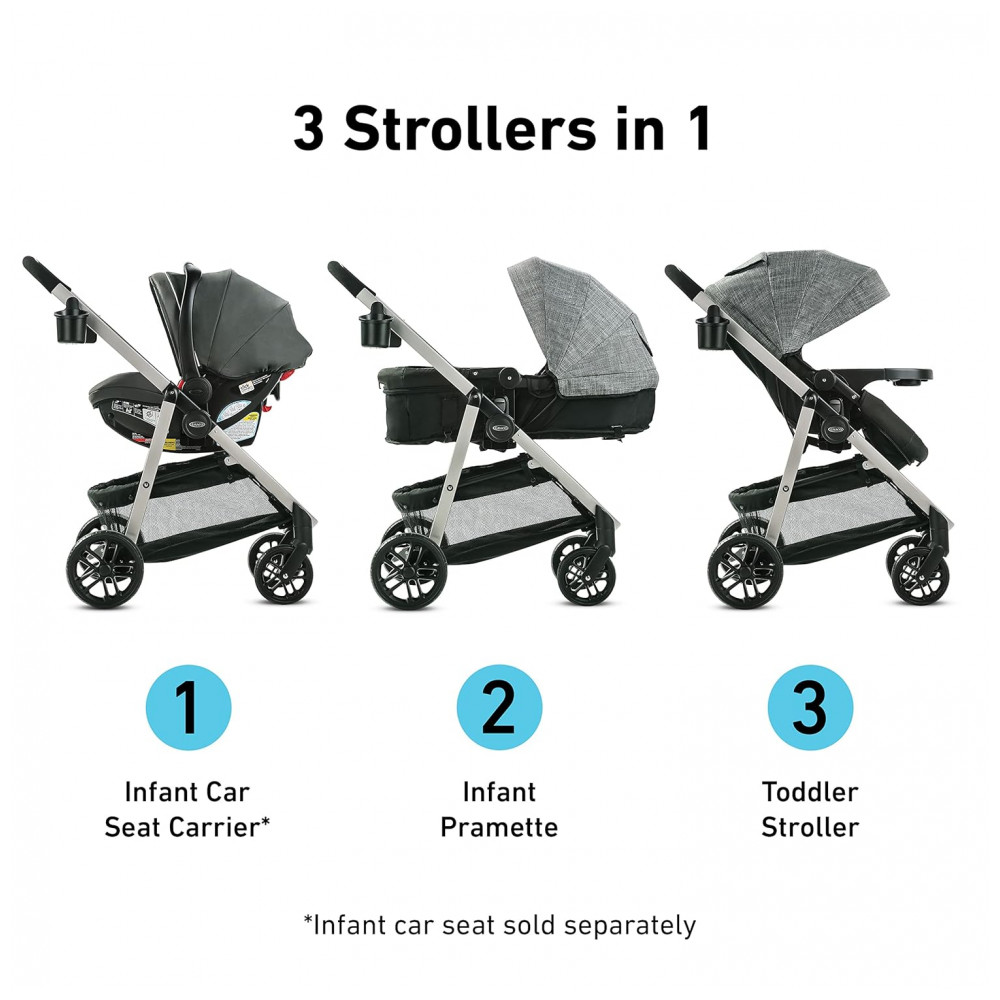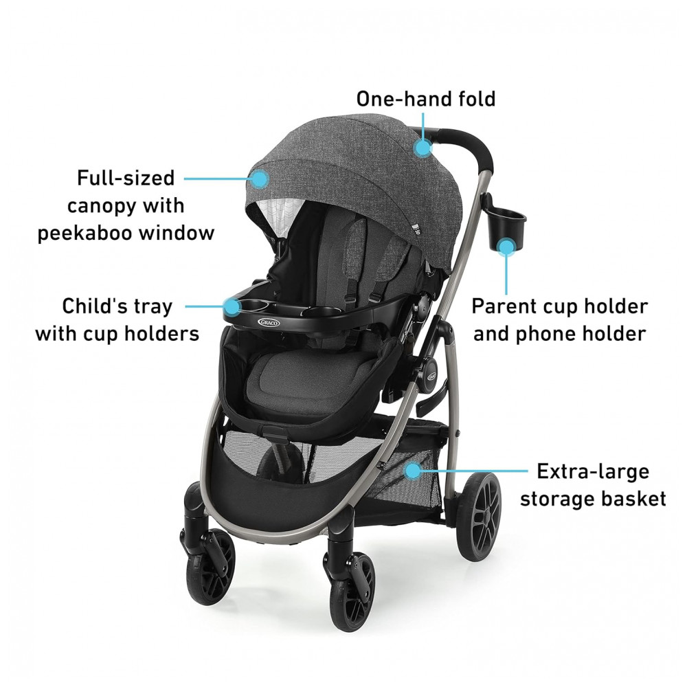 O carrinho aceita todos os assentos infantis Graco para uma transição fácil do carro para o carrinho assento infantil vendido separadamente.