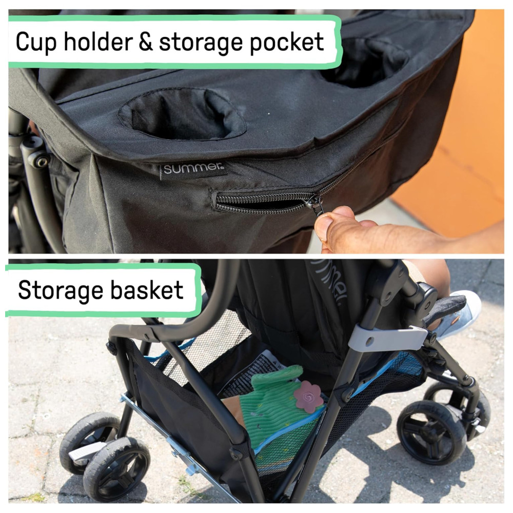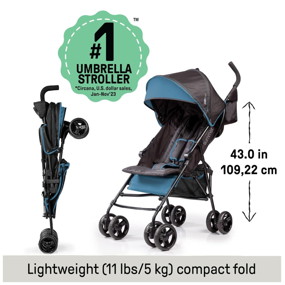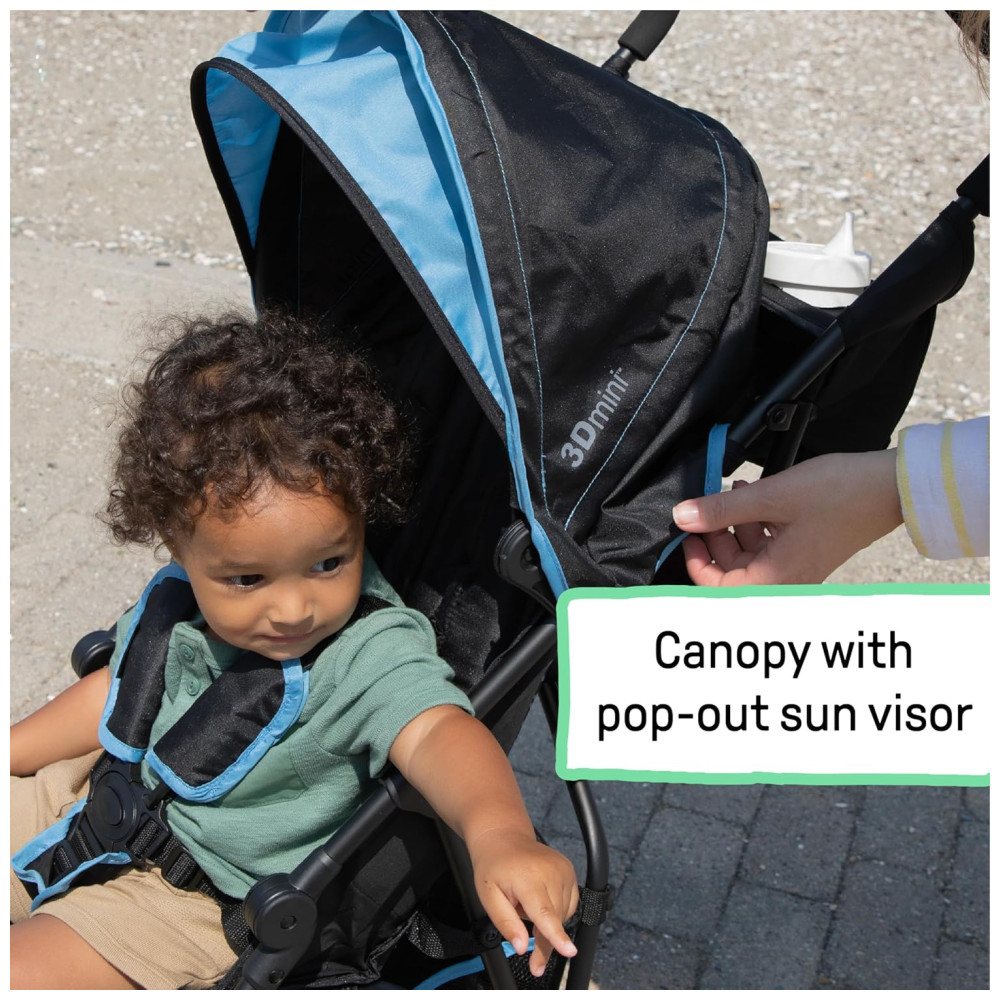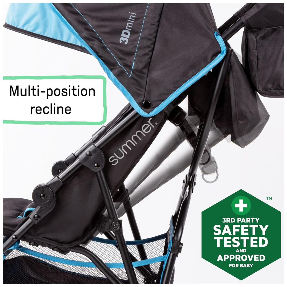 Carrinho de Bebê Leve Summer by Ingenuity 3D Mini Compacto e Confortável Reclinável em Diversas Posições Proteção Solar Ideal para Viagens Azul e Preto