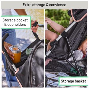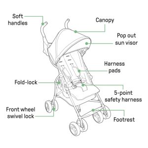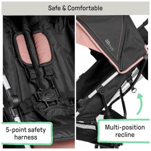 Recursos Adicionais: Capota ajustável, porta-copos, reclinável em múltiplas posições, Dobrável, Cinto de Segurança de 5 Pontos,
