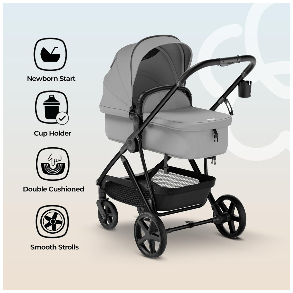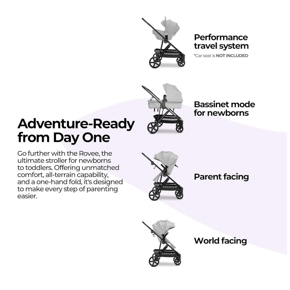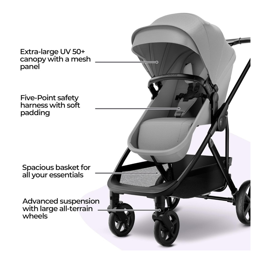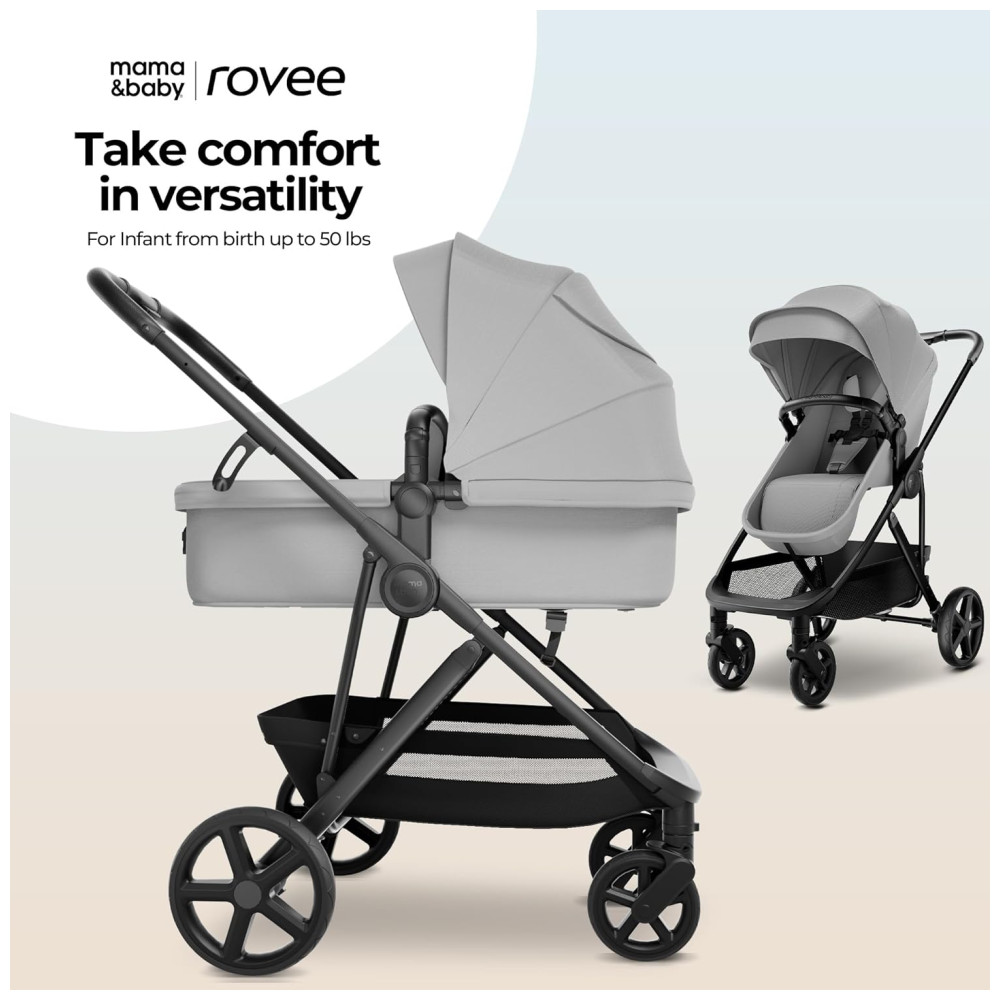 O Carrinho de Bebê MAMA BABY Rovee Bassinet é perfeito para acompanhar o crescimento do seu filho, desde recém-nascido até 22,7 kg. Com assento 2 em 1, que se converte facilmente de um confortável moisés para um assento de criança. Compatível com as cadeirinhas de carro MaxiCosi e Nuna (adaptador vendido separadamente), oferecendo conveniência em suas viagens. Possui rodas omnidirecionais que garantem uma manobrabilidade excepcional, suspensão avançada para um passeio suave e confortável, e uma capota removível com proteção solar UPF 50. Além disso, inclui cobertura para os pés e capa de chuva para proteger seu bebê em todas as condições climáticas. Com estrutura compacta e cesto de armazenamento espaçoso, este carrinho dobra facilmente, sendo ideal para famílias em movimento.