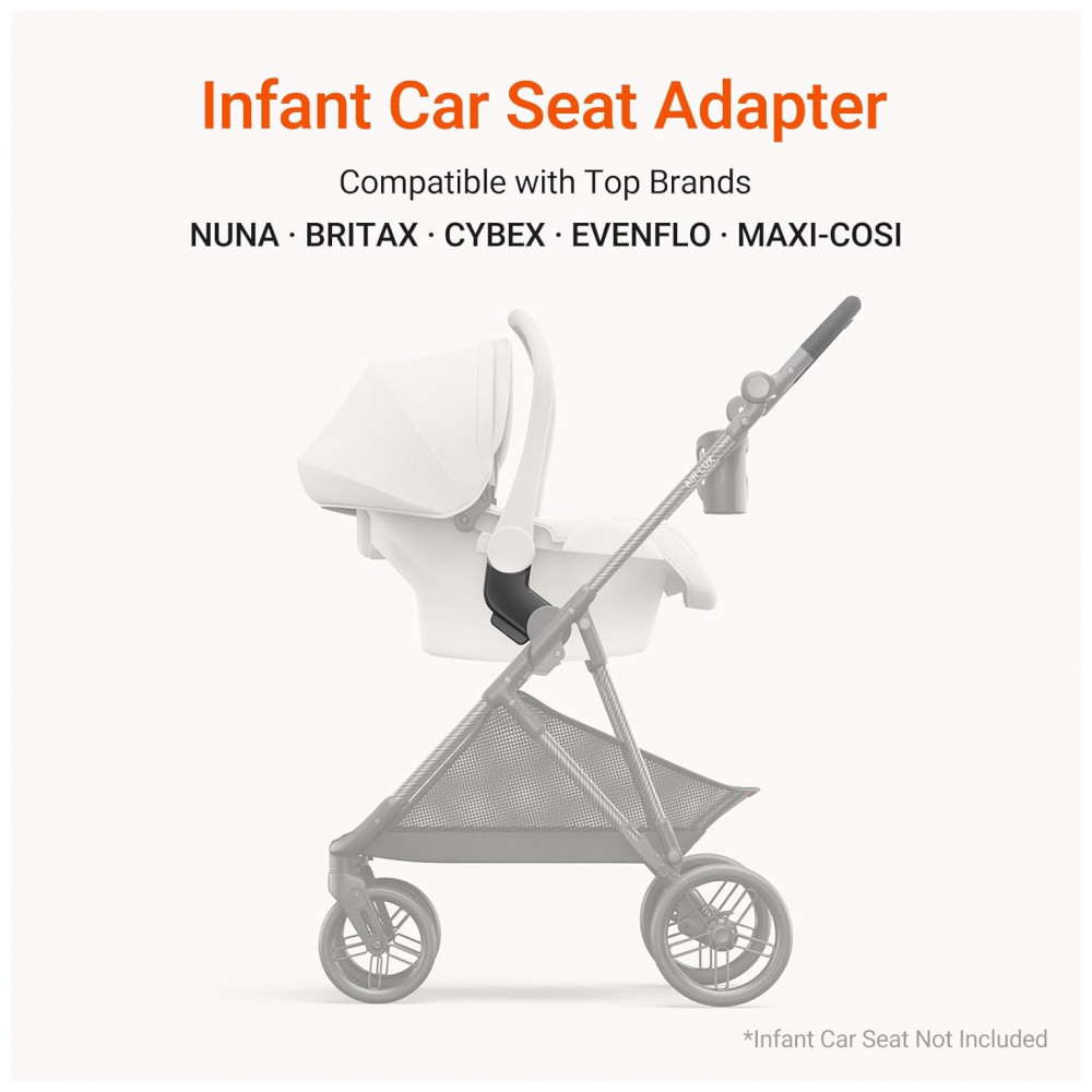 Inclui adaptador para bebê conforto compatível com marcas principais (bebê conforto vendido separadamente), facilitando a transição entre carro e carrinho sem interromper o sono da criança.