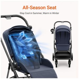 Carrinho de Bebê MAMAZING Air Lux Azul Marinho – Estrutura em Fibra de Carbono Dobrável com Uma Mão Assento Reversível Adaptador para Bebê Conforto