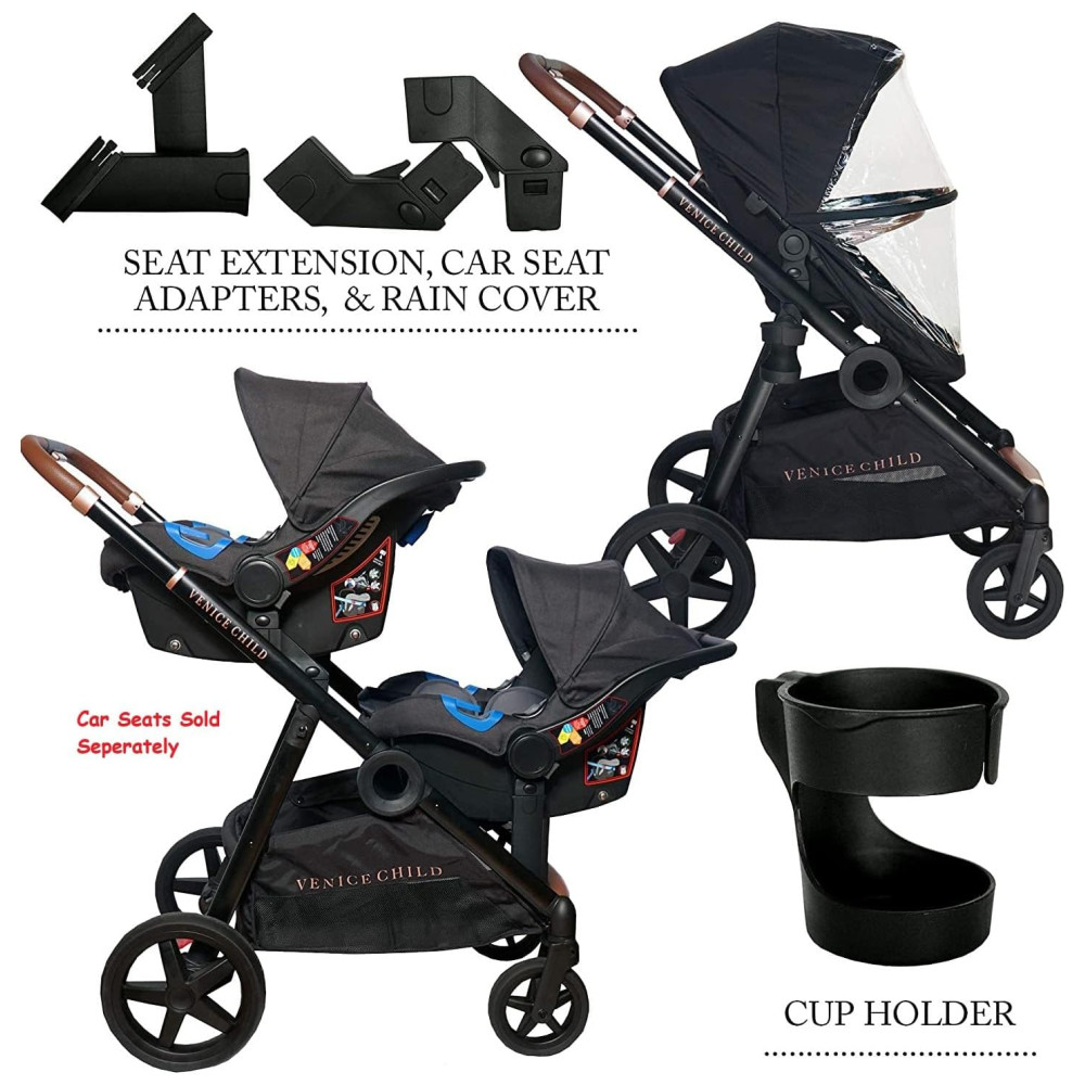 O carrinho pode ser voltado para a frente ou para os pais e é confortável tanto para recém nascidos quanto para crianças, graças aos adaptadores de assento de carro incluídos. O carrinho acomoda assentos de carro e assentos de criança juntos, sem a necessidade de compra separada.