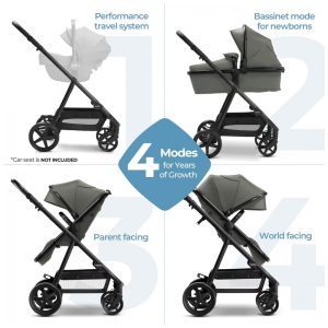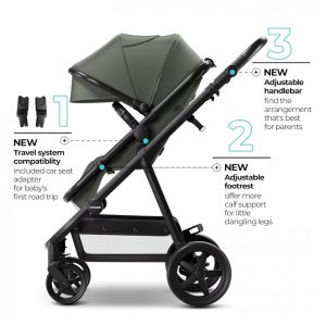 Carrinho de Bebê para Passeio 2 em 1 com Modo Berço Compatível com Assento de Carro Infantil Mompush Verde Escuro