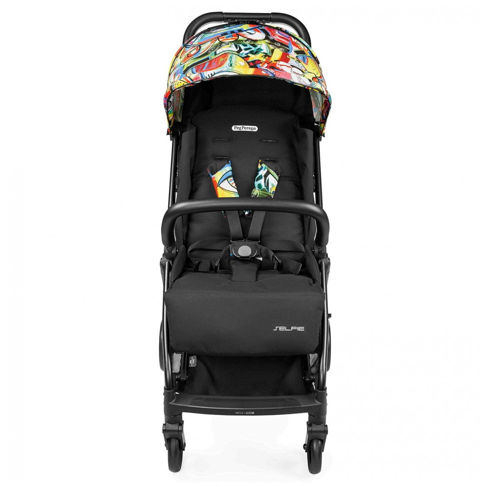 Feito na Itália. O selfie é um carrinho leve e compacto de fechamento automático com um giro rápido da alça