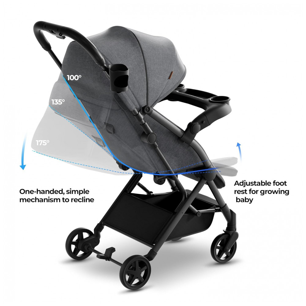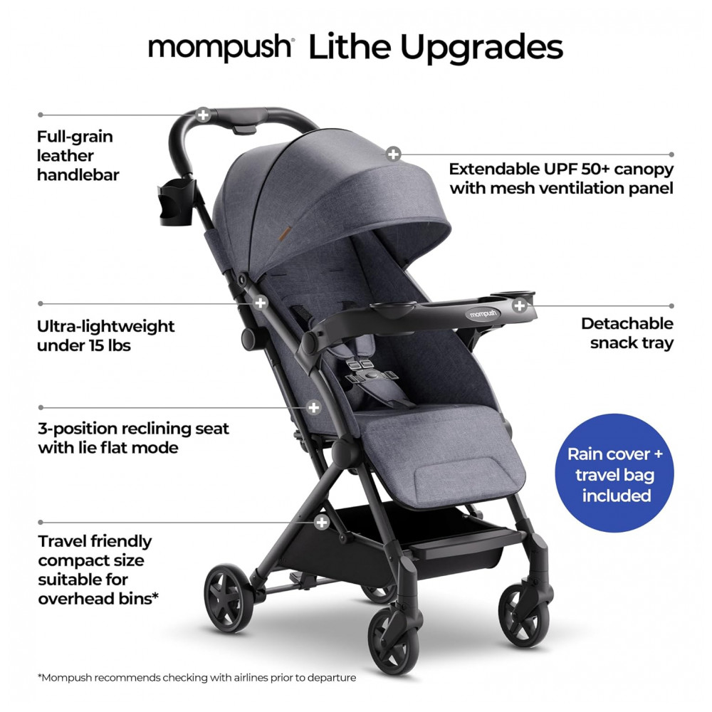 Carrinho de Bebê para Passeio Dobrável Ultracompacto com Assento Reclinável Porta Copos Bolsa de Viagem e Capa de Chuva Mompush Lithe V2 Cinza