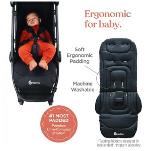 Assento ergonômico e confortável e reclinação quase plana: o assento mais acolchoado de qualquer carrinho premium e ultracompacto com reclinação profunda e apoio de pernas ajustável plano para tornar o tempo tranquilo em movimento confortável e fácil.