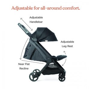 Guiador ajustável: Um dos únicos carrinhos compactos com guiador extensível em altura. Ergonomicamente projetado para melhorar sua postura enquanto você empurra e permitir espaço para passadas maiores.