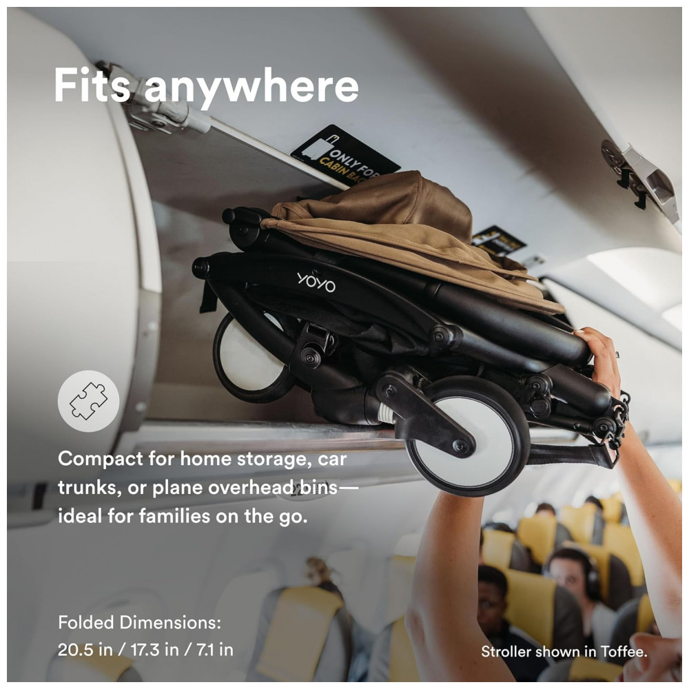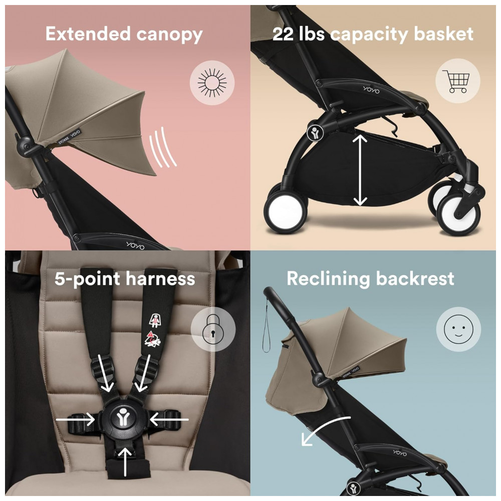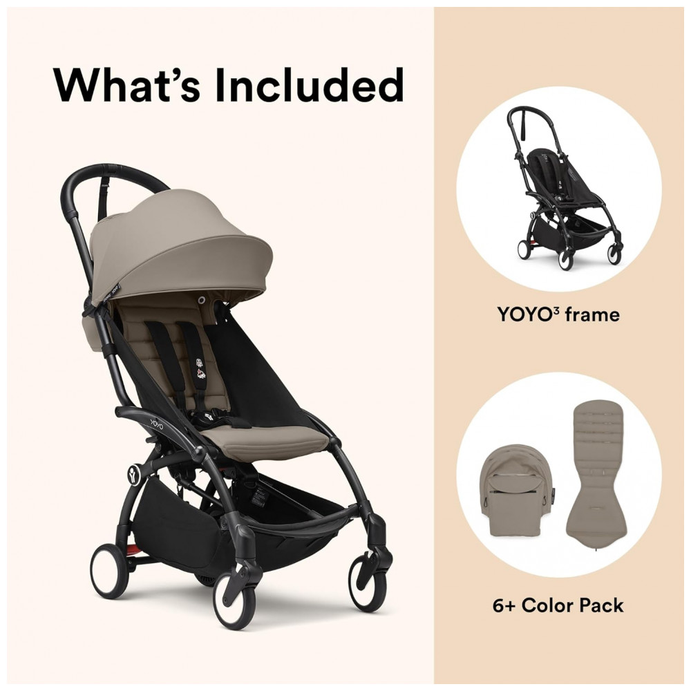 Carrinho de Bebê Stokke YOYO3 Taupe – Estrutura Preta Dobrável Compacto Reclinável Cinto 5 Pontos Compatível Carry-On