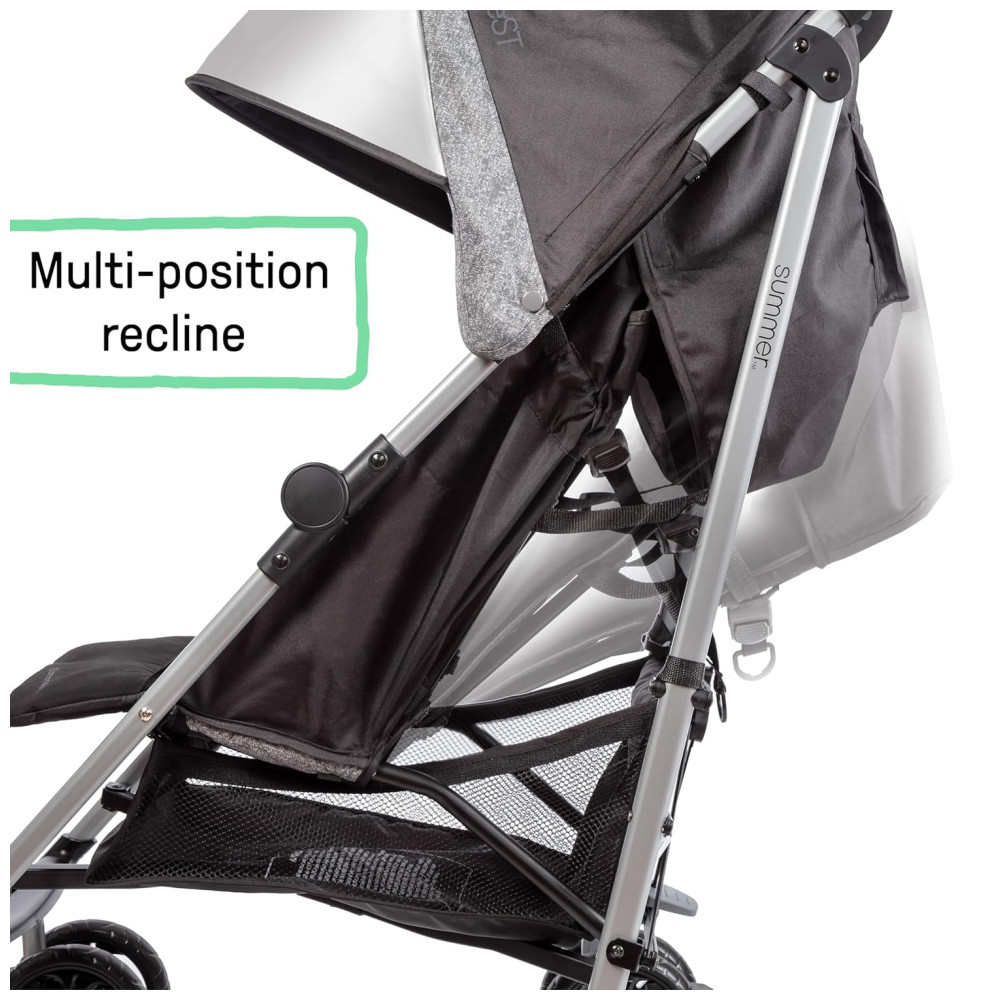 Carrinho de Bebê Summer Infant 3Dlite ST Preto/Cinza – Leve e Durável com Estrutura de Aço Assento Amplo Reclinável em Várias Posições e Cesto de Compras