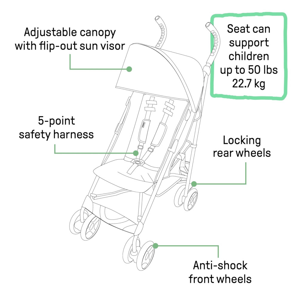 Com o Carrinho de Bebê Summer by Ingenuity 3Dlite ST, você não precisa abrir mão de nenhum recurso desejado em um carrinho de bebê! Este carrinho de bebê de um dos principais fabricantes de carrinhos guarda-sóis possui uma estrutura de aço durável, leve e elegante que o torna o carrinho de viagem perfeito. Com um chassi compacto e fácil de dobrar, este carrinho é indispensável para os pais, perfeito para recados rápidos, viagens curtas ou longas férias. Este carrinho leve possui uma ampla área de assento, reclinável em múltiplas posições, cinto de segurança de 5 pontos, rodas dianteiras antichoque, rodas traseiras traváveis, capota ajustável e removível com viseira solar retrátil, dobra compacta fácil e trava automática, cesto de armazenamento extra grande, bolso de armazenamento traseiro e porta-copos. Um carrinho leve torna qualquer passeio um pouco mais fácil! O Carrinho de Bebê Summer by Ingenuity 3Dlite ST tem uma estrutura de aço durável que pesa apenas 15 libras e possui uma área de assento ampla, rodas dianteiras antichoque e rodas traseiras traváveis. PARA VIAGENS E O DIA A DIA. Seja viajando ou apenas saindo para fazer recados diários, ter um carrinho leve e compacto é essencial! Com este carrinho fácil de usar, você terá uma opção de carrinho tanto para o dia a dia quanto para viagens. RECLINÁVEL EM MÚLTIPLAS POSIÇÕES. Mantenha seu pequeno confortável e seguro o tempo todo com a reclinação em múltiplas posições e o cinto de segurança de 5 pontos. Peso e altura máximos da criança para este carrinho de bebê: 22,7 kg DOBRA COMPACTA. A dobra compacta fácil e a trava automática tornam simples armazenar este carrinho guarda-sol leve e levá-lo com você! Além disso, a capota ajustável e removível com viseira solar retrátil é perfeita para dias ensolarados. ESPAÇO EXTRA DE ARMAZENAMENTO. Com bastante espaço de armazenamento neste carrinho, você não precisará deixar nada para trás. Inclui um cesto de armazenamento extra grande, bolso de armazenamento traseiro e porta-copos. Não sobrecarregue o cesto de armazenamento 5 kg.