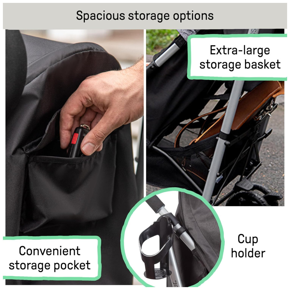 Componentes Inclusos: Cesto de armazenamento, Bolso de armazenamento traseiro, Porta-copos, Capota com viseira solar,