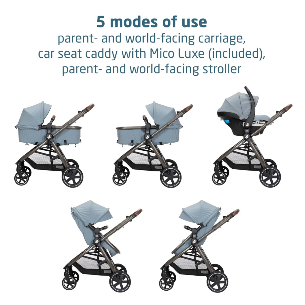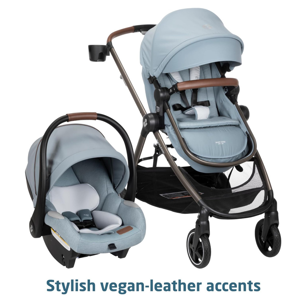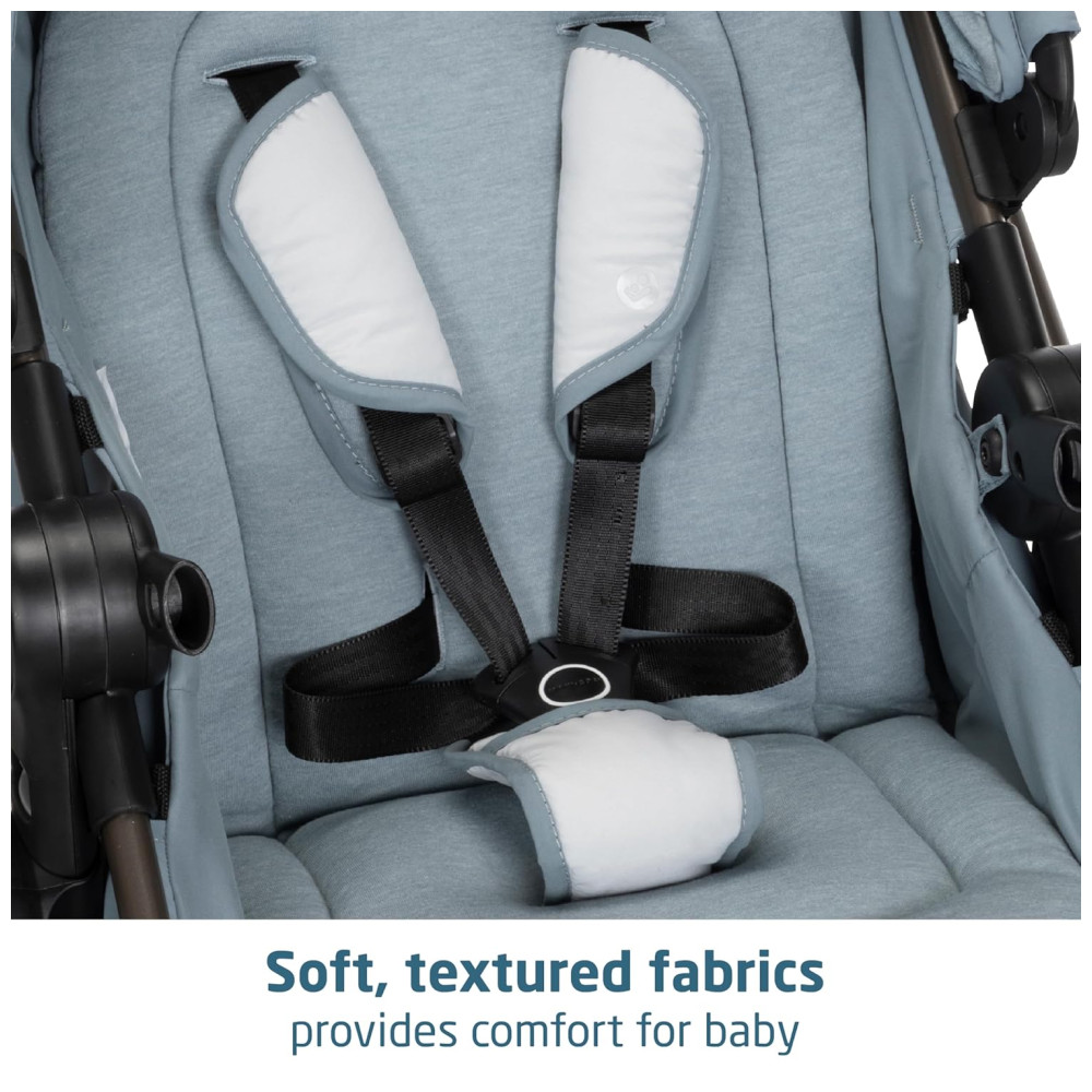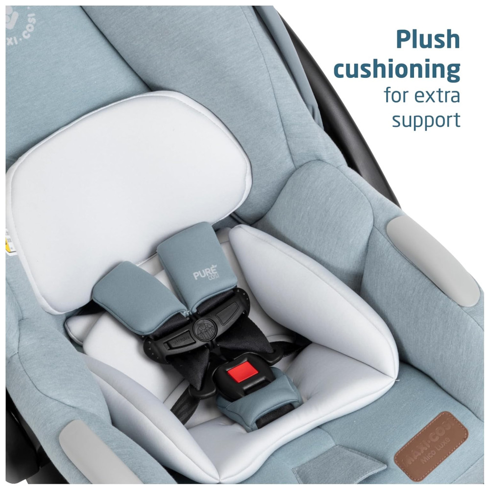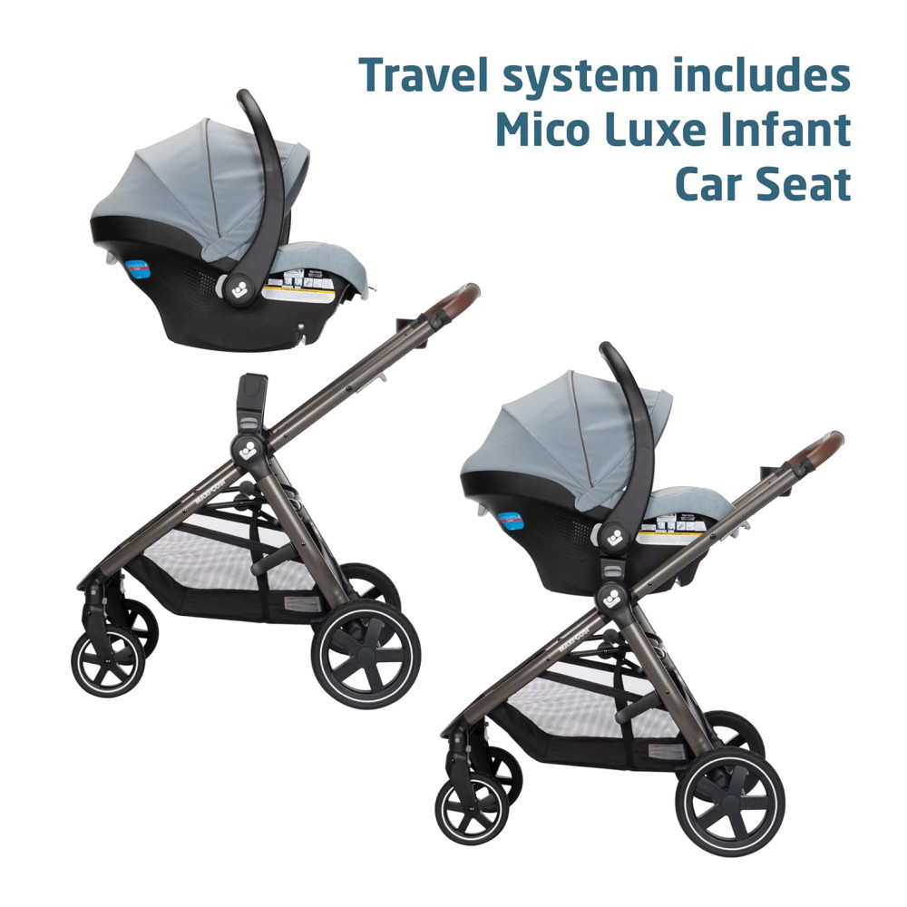O conjunto inclui a leve cadeirinha infantil MICO LUXE INFANT CAR SEAT, projetada para ajustes rápidos e perfeitos entre o carro e o carrinho, e que possui recursos avançados de segurança, inserções infantis macias e tecidos PureCosi premium. Além disso, o carrinho é facilmente dobrável e independente, tornando o um carrinho de viagem conveniente para viagens de avião e fácil armazenamento em casa.