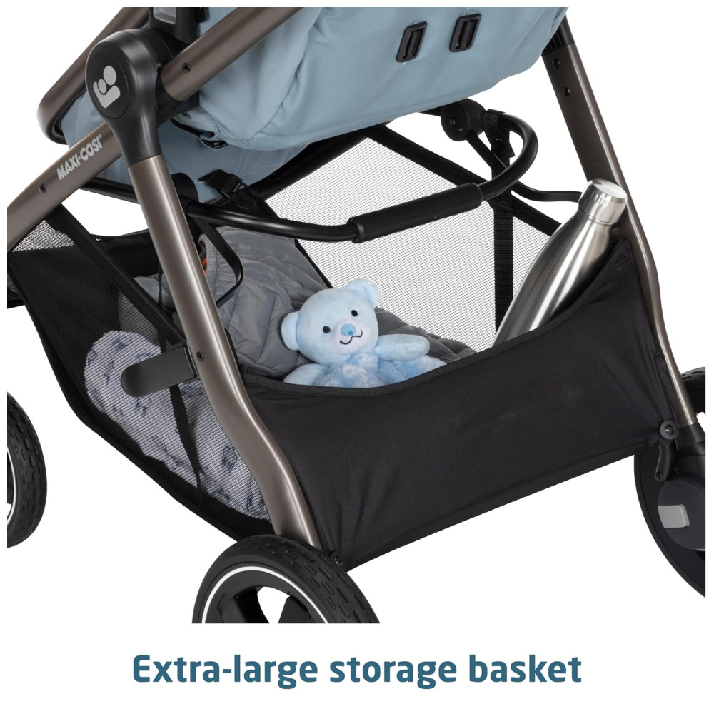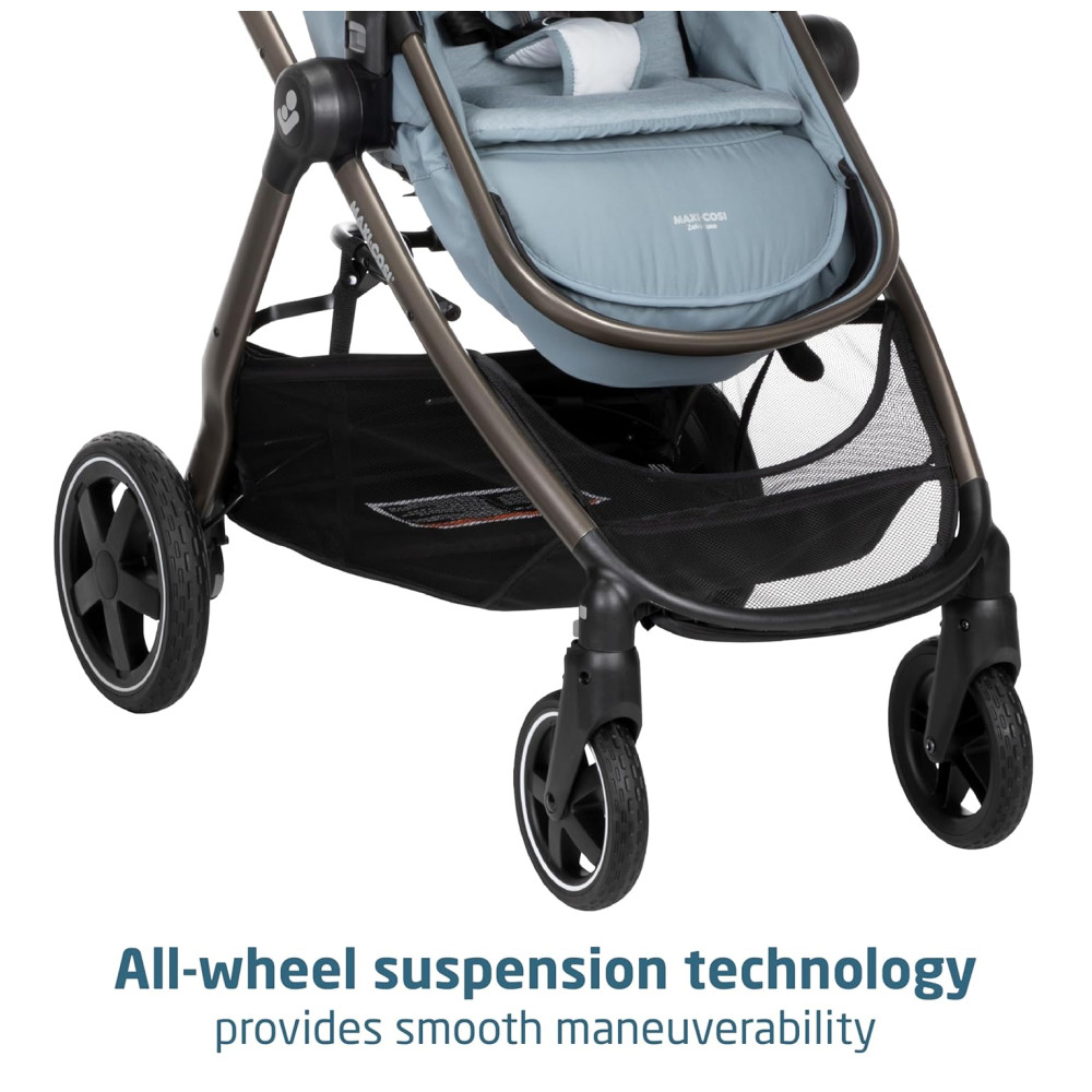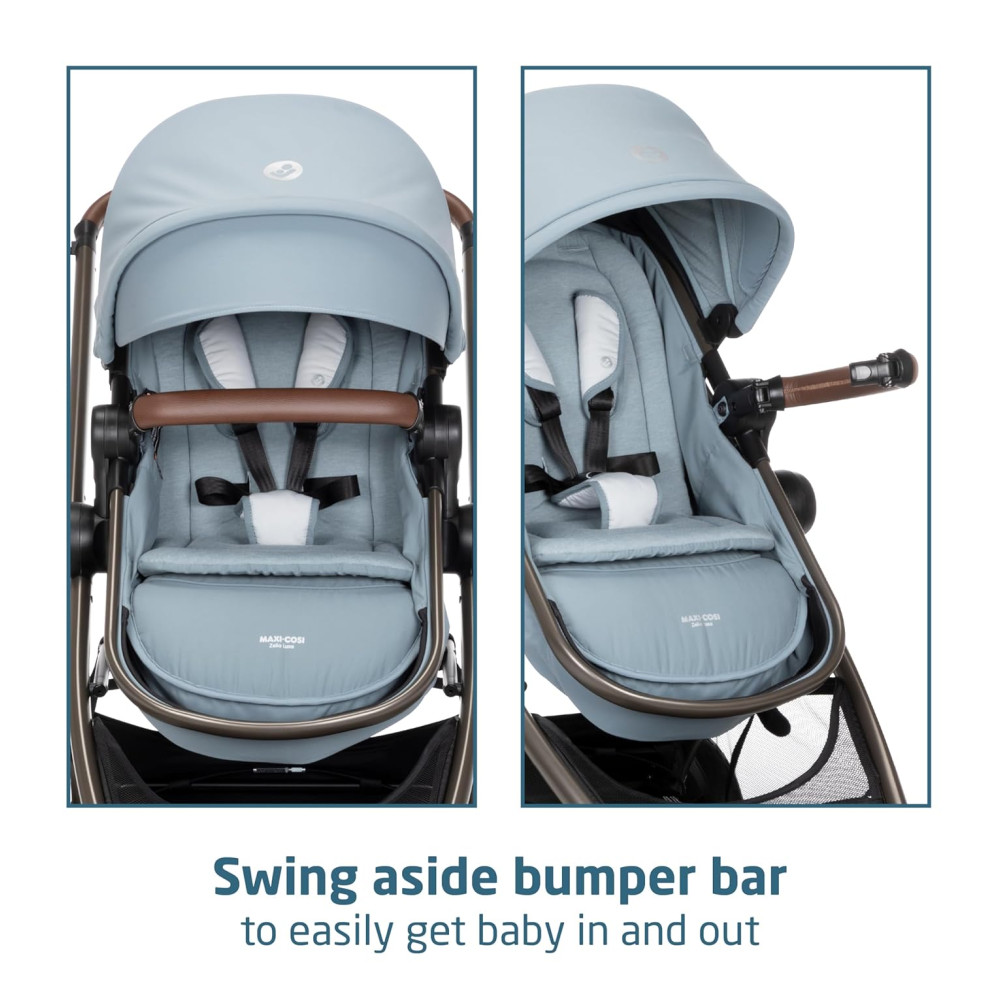 Carrinho de Bebê Travel System 5 em 1 Modular com Porta-Copos Barra de Proteção e Capa de Chuva Maxi Cosi Zelia Luxe Azul