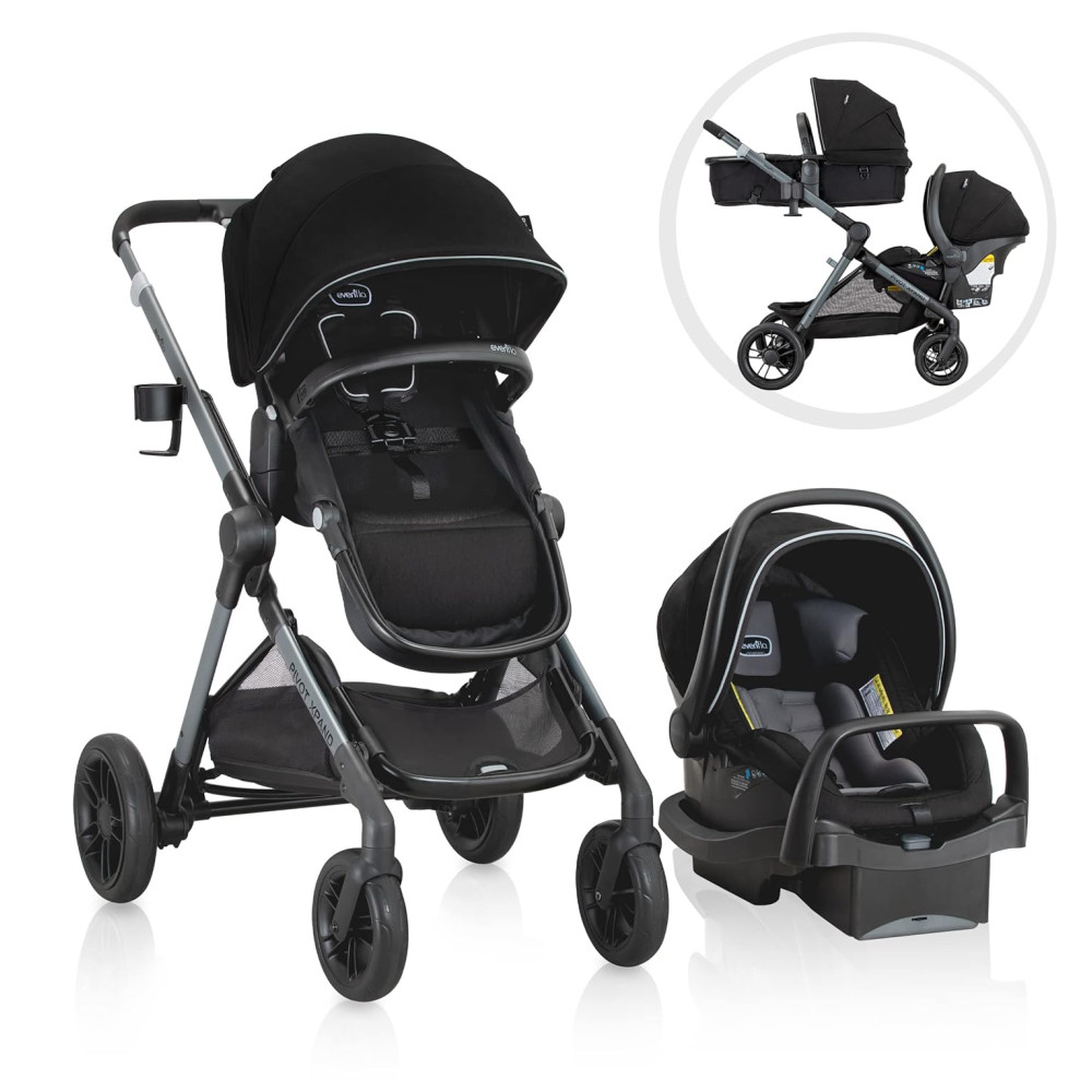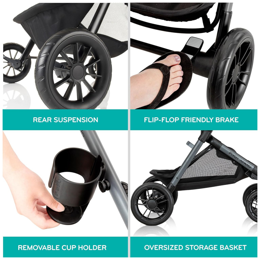 Carrinho de Bebê Travel System com 23 Configurações e Barra Anti-Rebote Evenflo Pivot Xpand Preto
