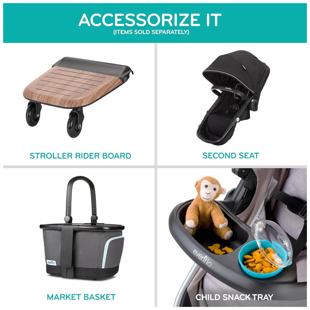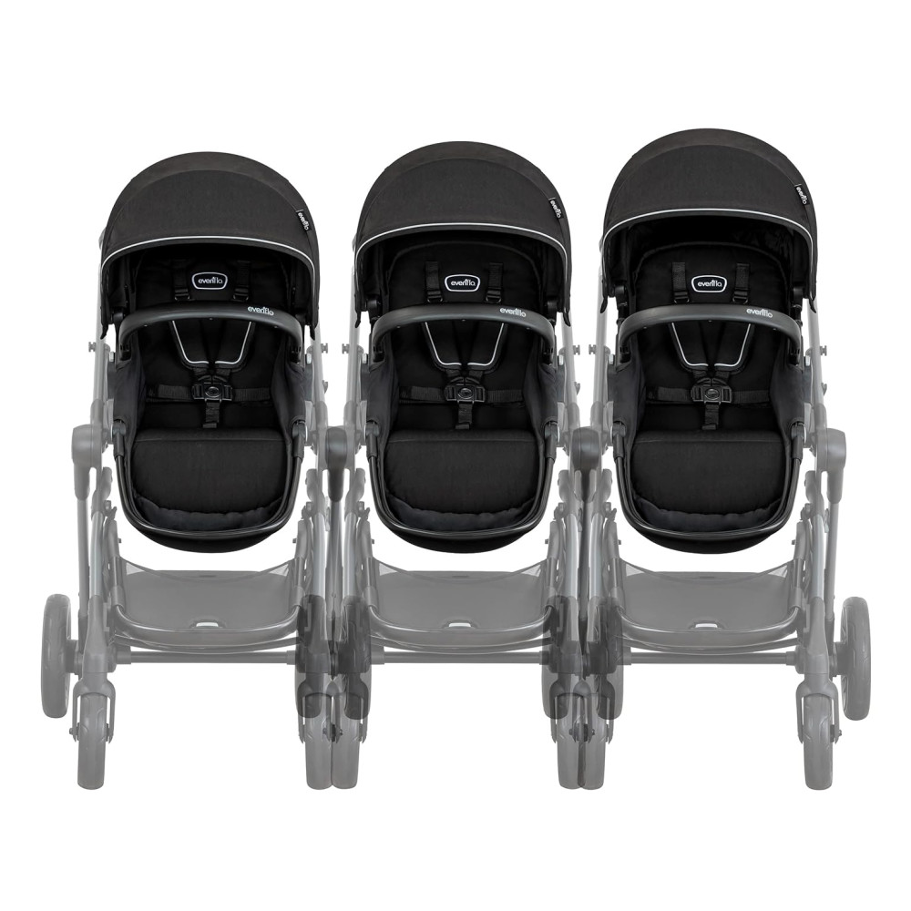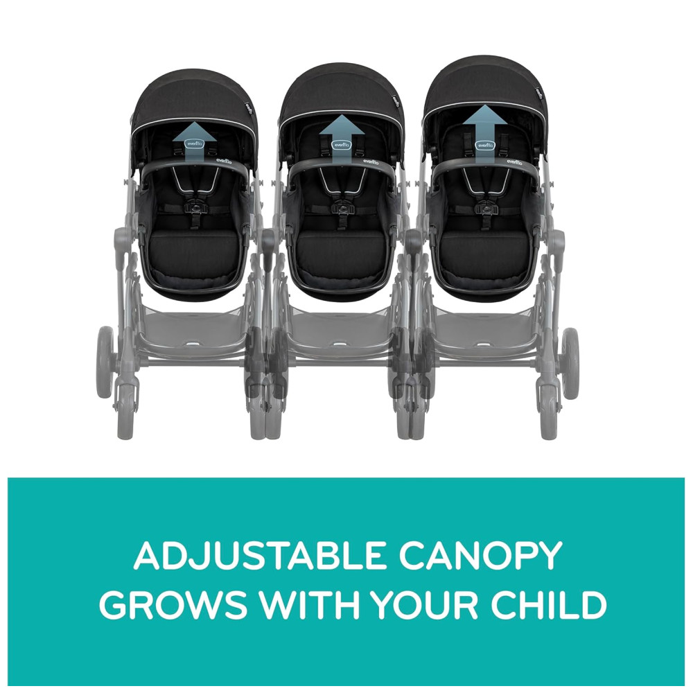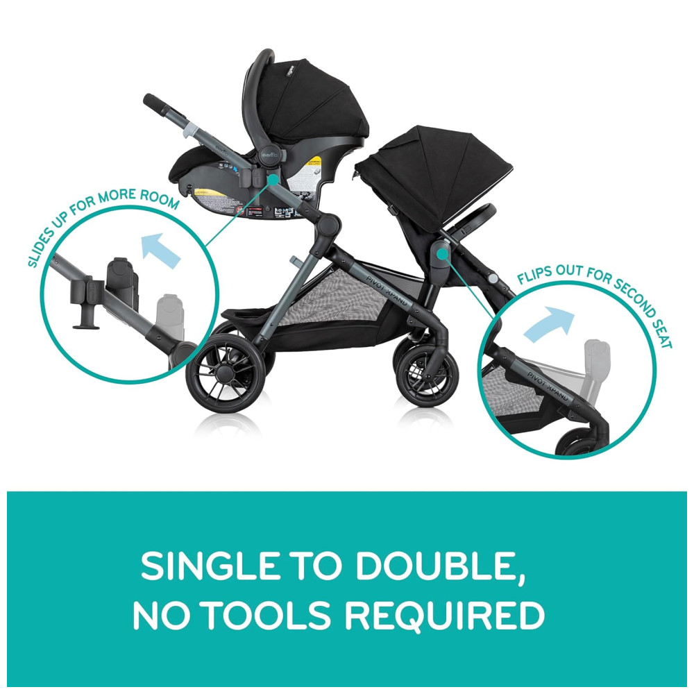 O sistema de viagem modular Evenflo Pivot Xpand é um carrinho de bebê versátil que pode ser facilmente transformado em um carrinho duplo sem a necessidade de adaptadores ou ferramentas. Basta deslizar para cima e retirar os suportes de assento integrados para adicionar um assento de criança. O carrinho pode acomodar dois assentos infantis, dois assentos infantis para carro ou um de cada.