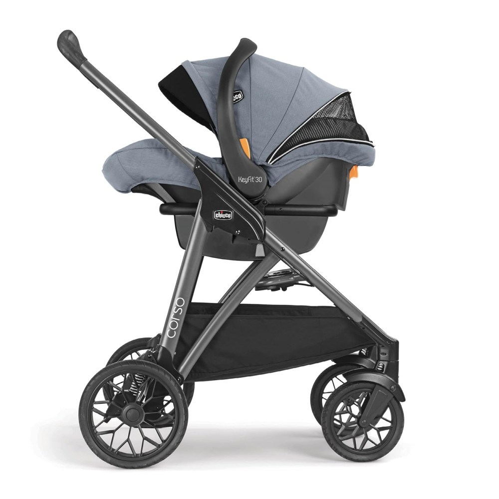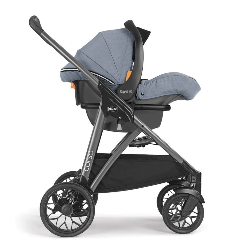 O sistema de viagem Corso Modular Travel System é a escolha perfeita para pais que buscam um carrinho de bebê elegante e moderno, mas que não abrem mão da praticidade e segurança. O conjunto inclui o assento de carro infantil KeyFit 30 Zip de alta qualidade, que se fixa facilmente ao carrinho por meio do adaptador de assento de carro incluído.