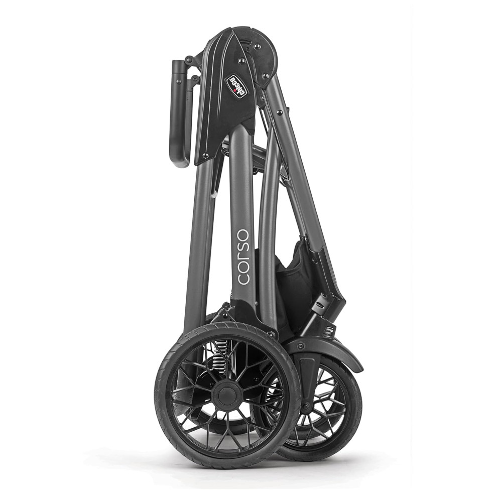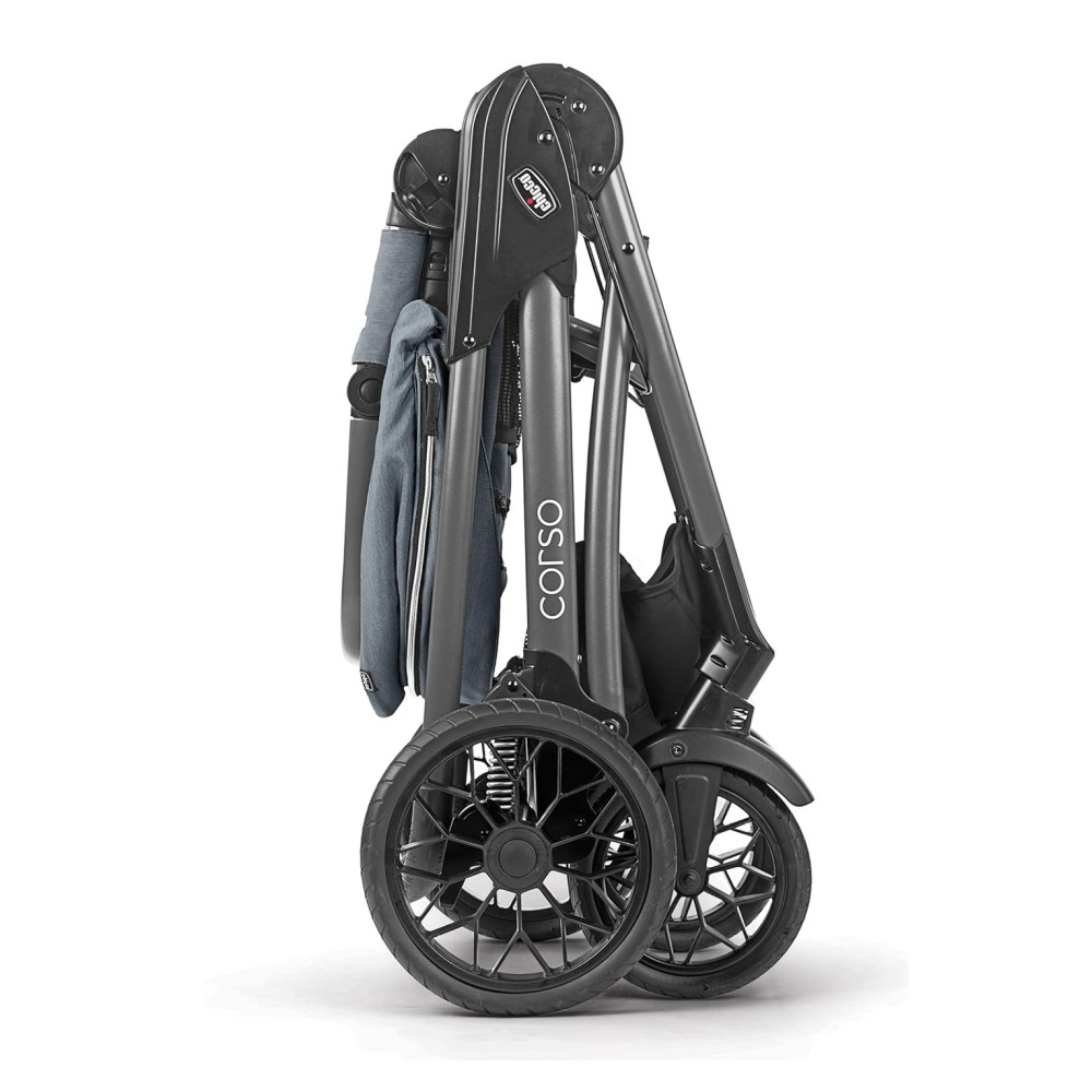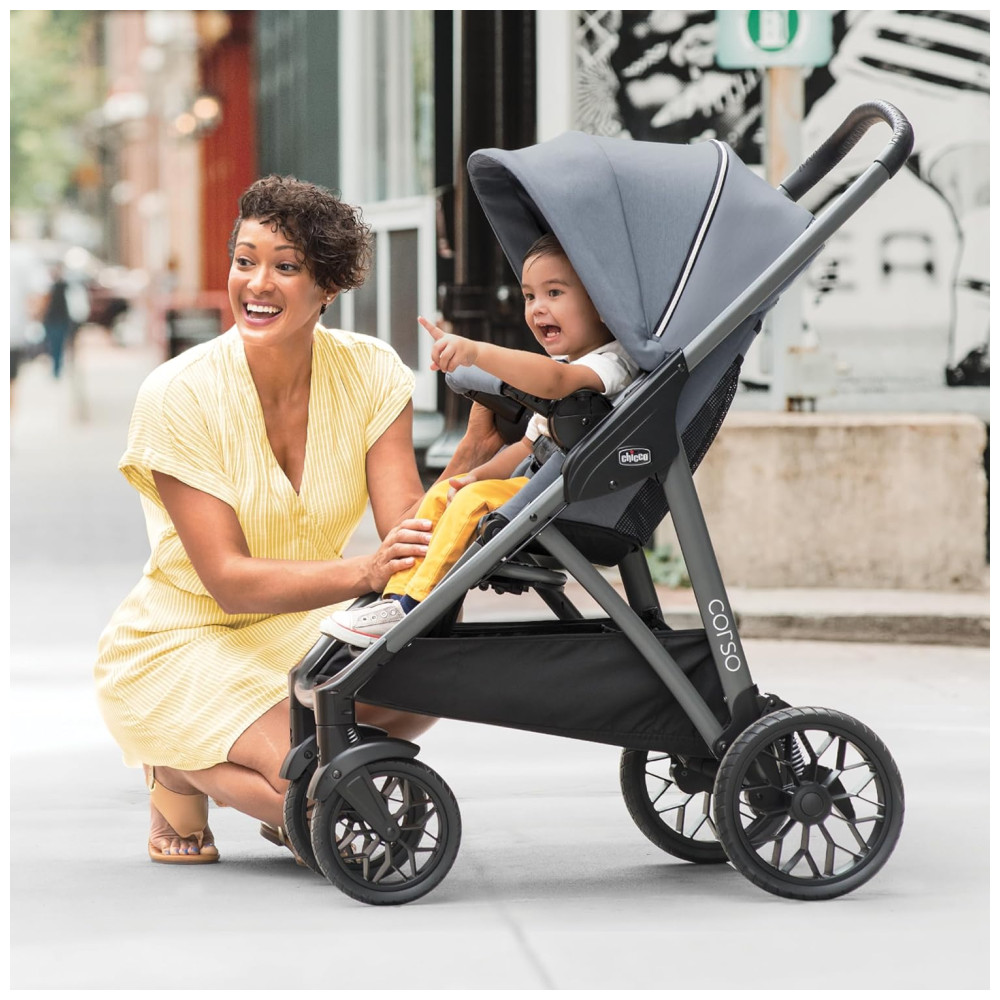 Com um apoio para os pés ajustável, assento reclinável multiposição, cobertura completa, dossel zipextend com malha painel e uma grande cesta de armazenamento com bolsos expansíveis para garrafas, o Corso é o carrinho de bebê ideal para pais que buscam praticidade, conforto e segurança.
