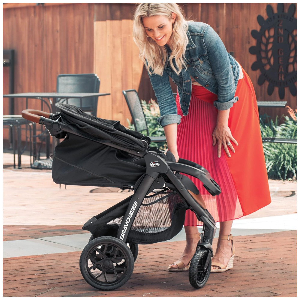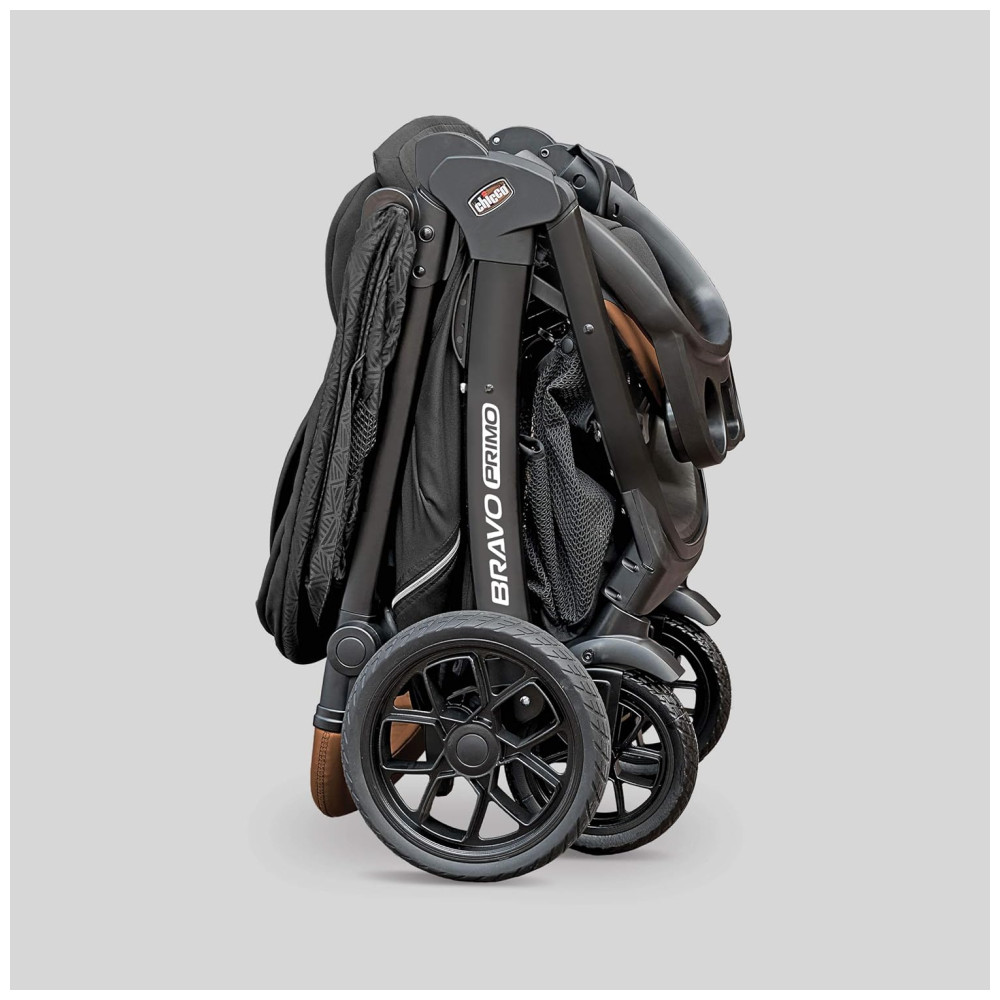 Carrinho de Bebê Travel System com Dobra Rápida Capota Removíveis e Pneus para Todo o Terreno Chicco Bravo Primo Preto
