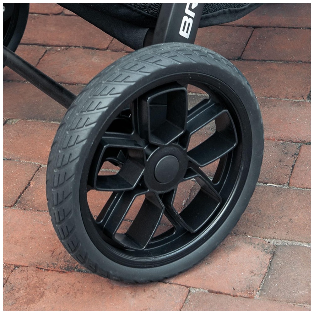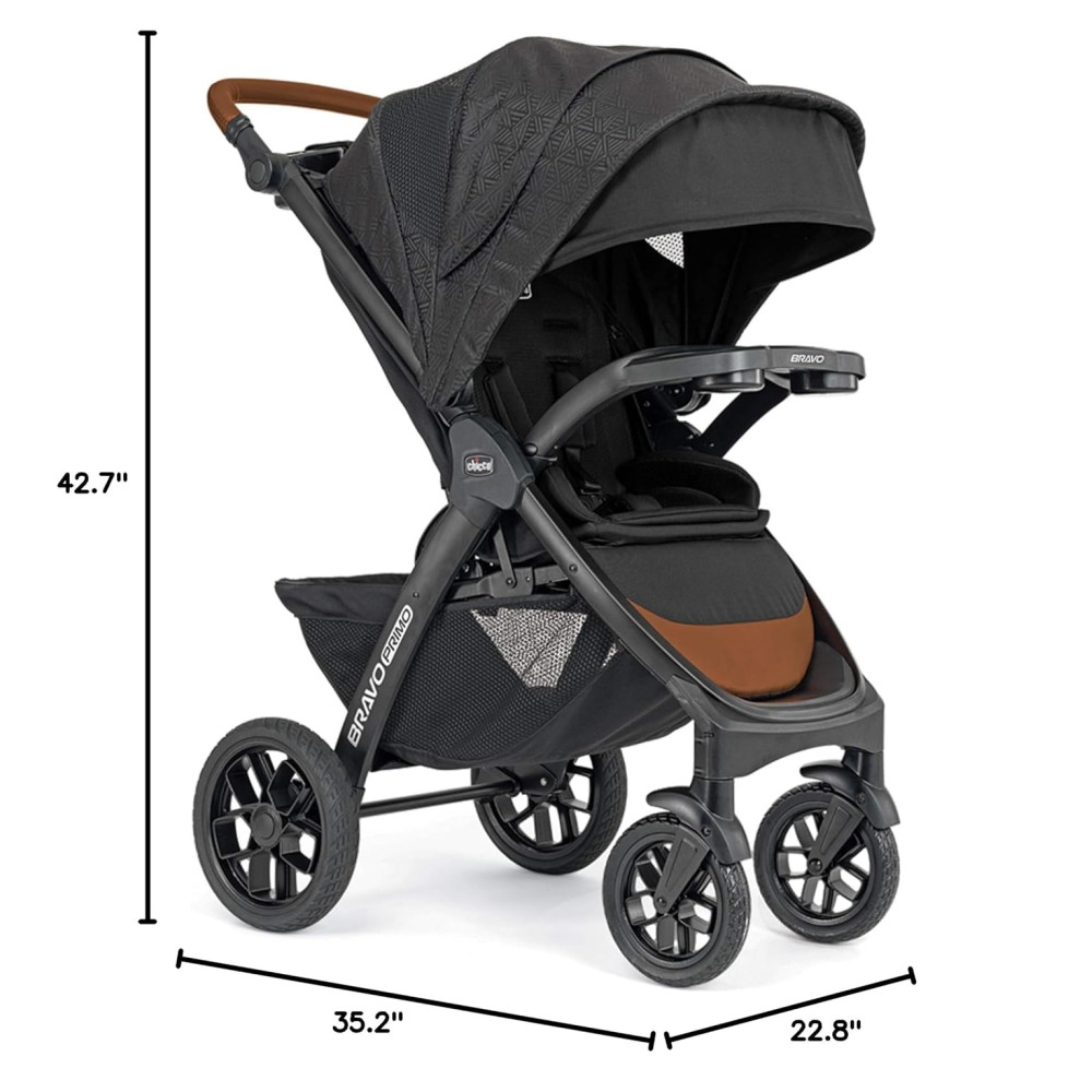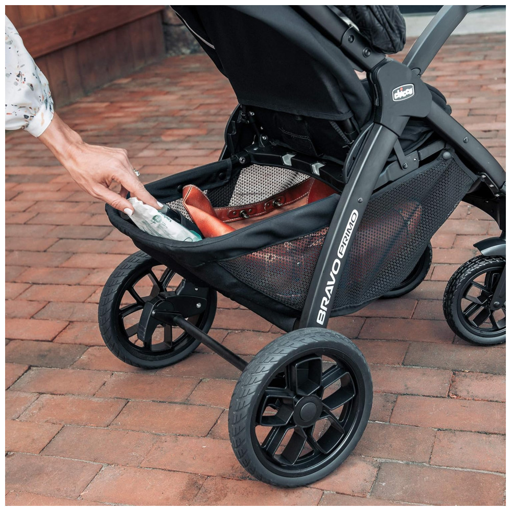 O assento reclinável multiposições do carrinho Bravo Primo é cercado por malha zip open para ventilação, enquanto o grande dossel UPF 50 com viseira removível e painel de malha flip open oferece proteção e conforto em todos os 3 modos. As rodas grandes e elegantes com pneus de borracha com espuma e suspensão nas quatro rodas permitem navegar em terrenos irregulares, e o freio de pé religado protege o carrinho com um simples toque. A alça multiposições em couro sintético ajusta em altura para conforto dos pais, enquanto a grande cesta de armazenamento possui dois bolsos e fácil acesso frontal traseiro.
