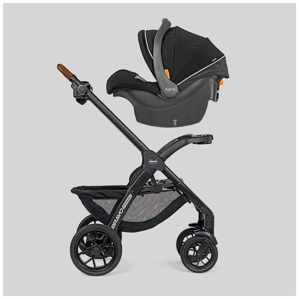 Este é um sistema premium de viagem para bebês, composto pelo carrinho Bravo Primo QuickFold e o assento de carro infantil Chicco KeyFit 35 Zip ExtendedUse. O assento de carro se encaixa no carrinho por meio da bandeja infantil, sem a necessidade de adaptador, permitindo transições sem esforço do carro para o carrinho. O carrinho Bravo Primo apresenta três modos, um suporte de estrutura leve, um sistema de viagem versátil e um carrinho de bebê de tamanho completo, atendendo às necessidades de viagem desde recém nascidos até crianças.