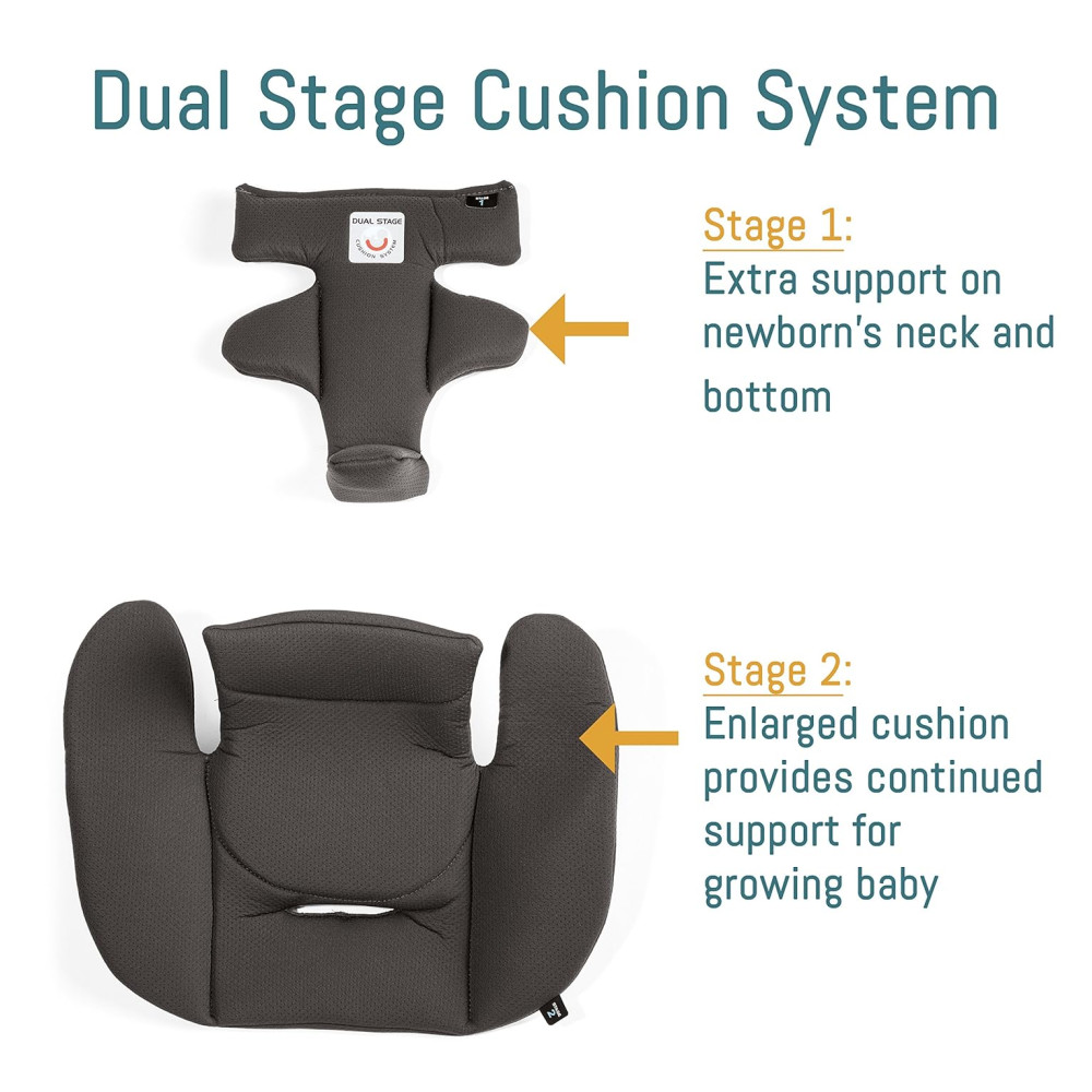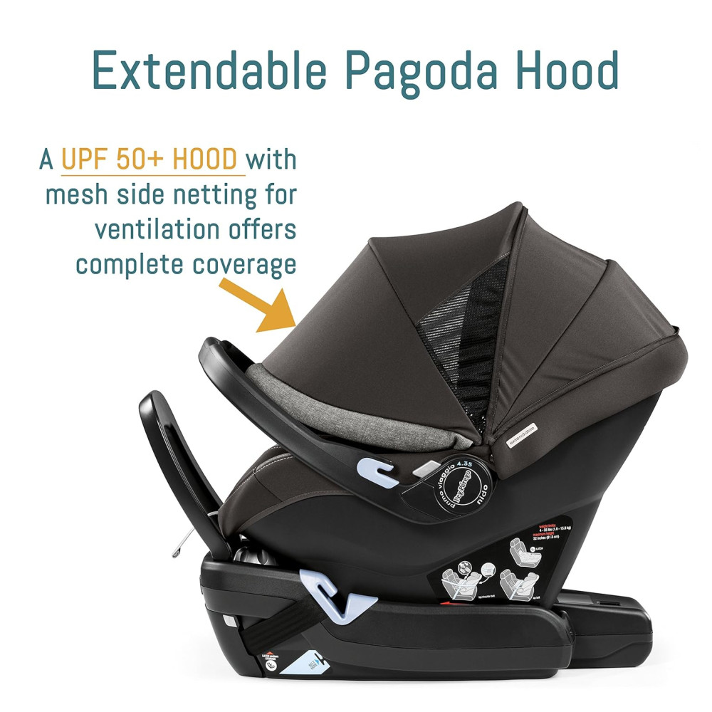 O assento é removível, reversível e pode ser dobrado diretamente no chassi. Já a cadeirinha Primo Viaggio 4-35 Nido inclui um inovador sistema de amortecimento de dois estágios, um capuz de pagode extensível e uma base premium que possui uma perna de carga integrada e uma barra anti rebote que atuam juntas na redução da rotação em 50º em uma colisão.