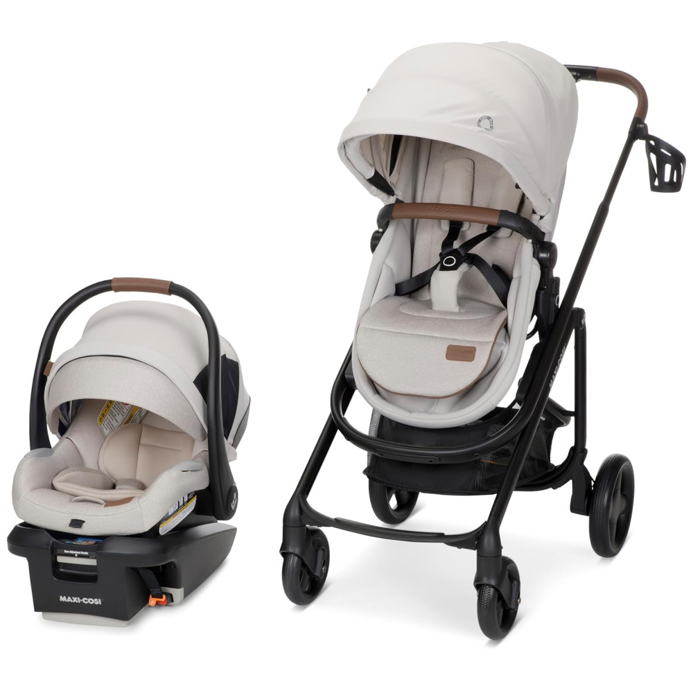 Carrinho de Bebê Travel System com Ventilação Embutida e Viseira Retrátil na Capota Maxi-Cosi Tayla Branco Areia do Deserto