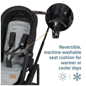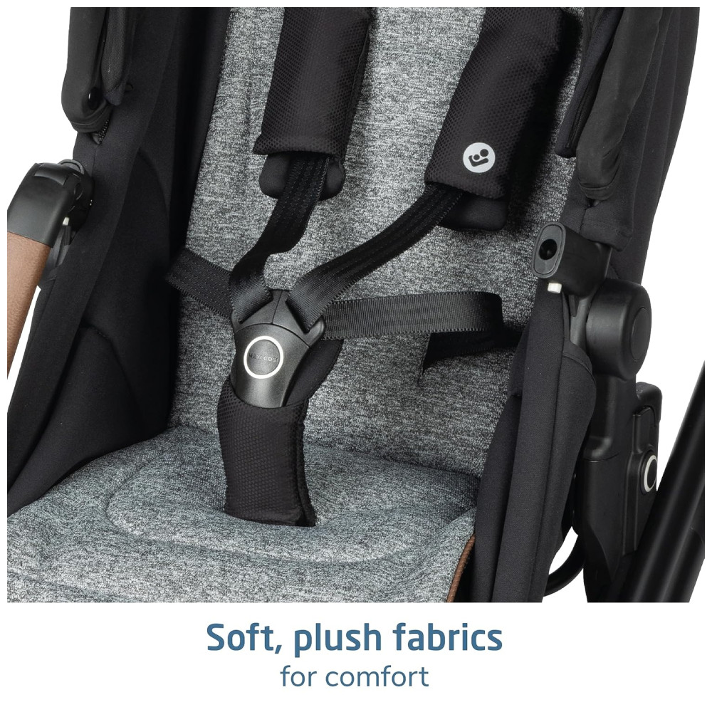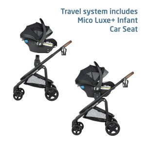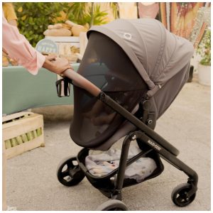 O carrinho possui recursos exclusivos, como o QuikCarriage, que permite que o assento vertical do carrinho se converta em um carrinho reclinável sem a necessidade de paradas para mudar de posição para o seu pequeno viajante. Além disso, no modo carrinho, é possível escolher entre 4 posições reclináveis para proporcionar ao seu filho um passeio relaxante. A cobertura 360 MaxShade com malha protetora pode ser estendida para maior privacidade ou proteção contra os elementos.