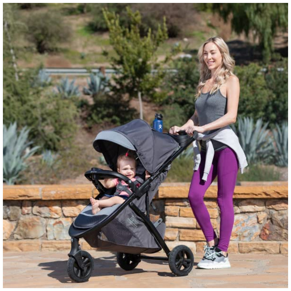 Este carrinho é repleto de recursos convenientes para os pais, incluindo um sistema de dobramento rápido e compacto com uma mão, uma grande cesta de armazenamento com acesso frontal e traseiro, um console para os pais com posicionador de telefone celular, dois porta copos e um console central para todas as suas necessidades em movimento.
