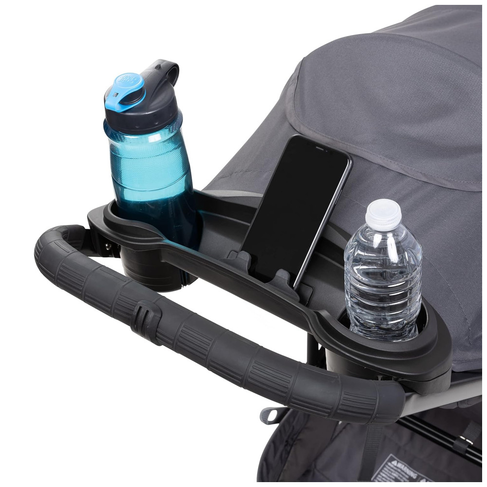 Este carrinho é repleto de recursos convenientes para os pais, incluindo um sistema de dobramento rápido e compacto com uma mão, uma grande cesta de armazenamento com acesso frontal e traseiro, um console para os pais com posicionador de telefone celular, dois porta copos e um console central para todas as suas necessidades em movimento.