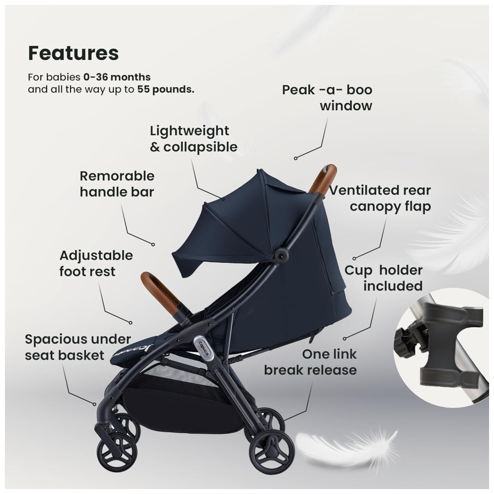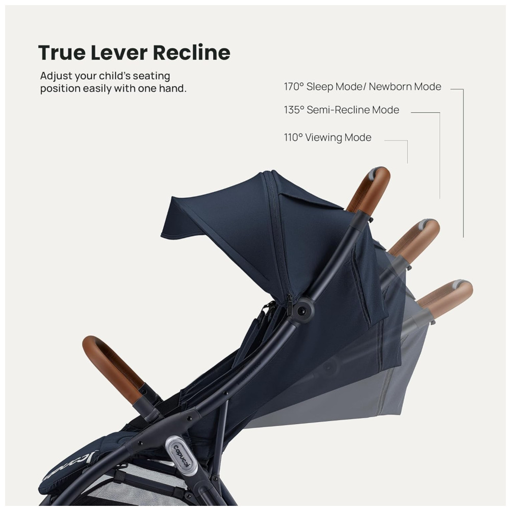 Carrinho de Bebê Ultracompacto Aprovado para Bagagem Suspenso com Reclinação Ajustável Capucci Azul Escuro