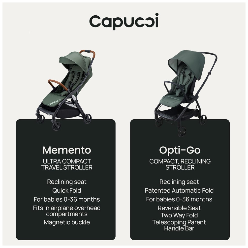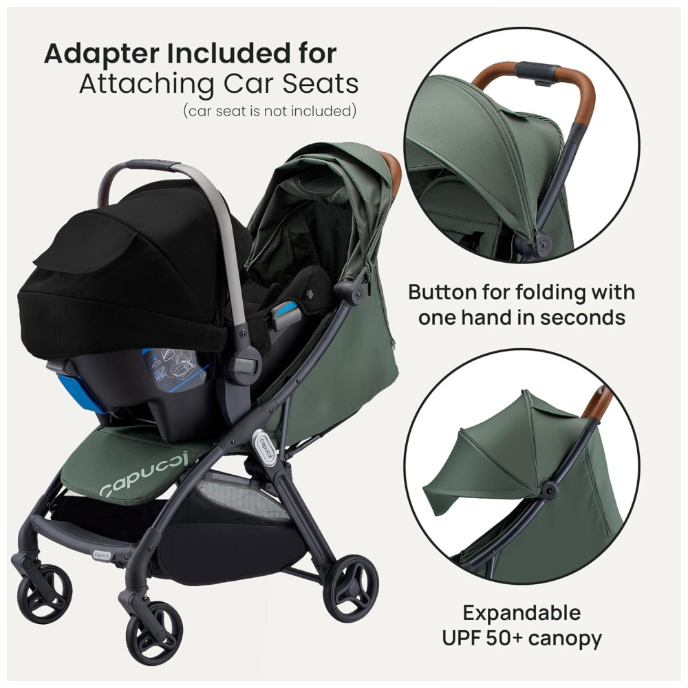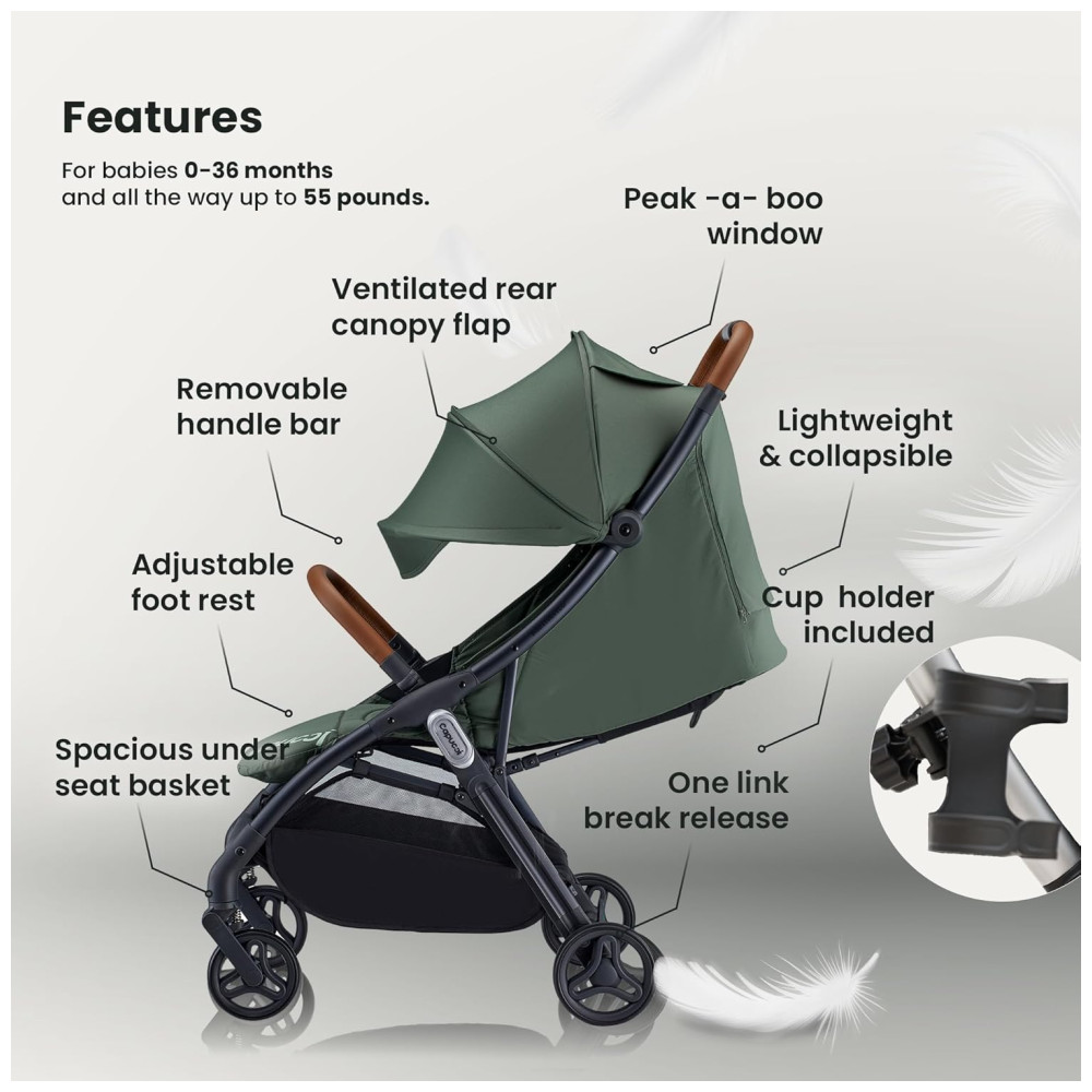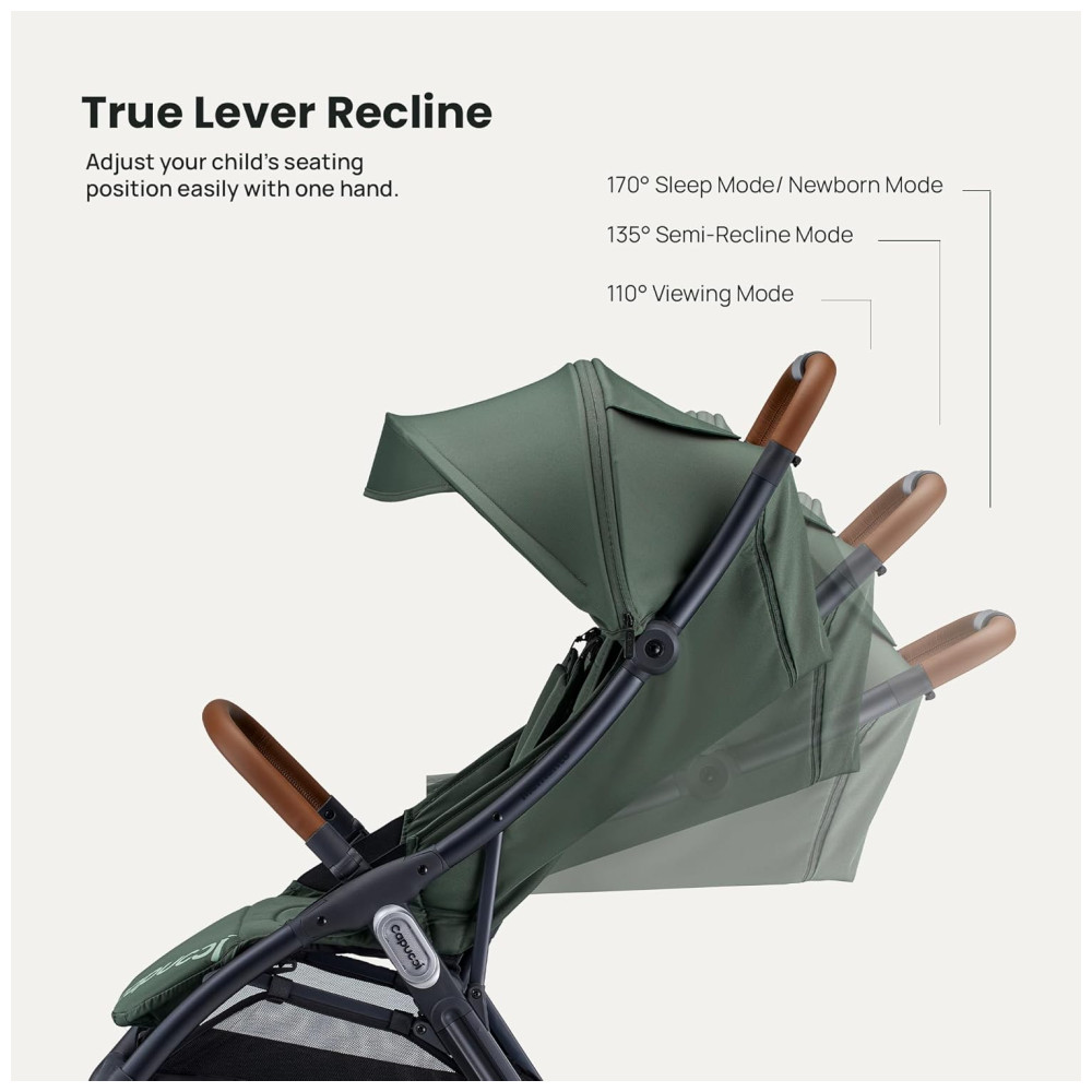 Carrinho de Bebê Ultracompacto Aprovado para Bagagem Suspenso com Reclinação Ajustável Capucci Verde Tomilho
