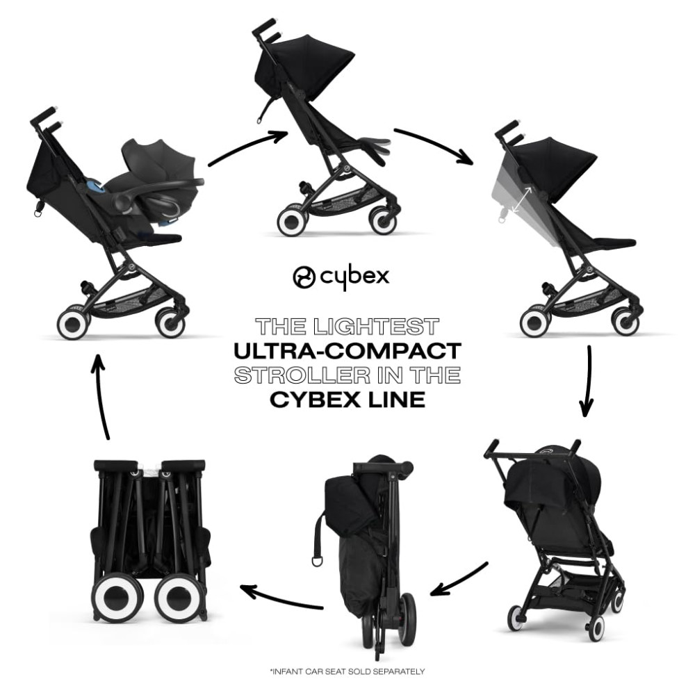 Carrinho de Bebê Ultracompacto com Suspensão Suave e Reclinação Ajustável com Uma Mão Cybex Libelle 2 Preto