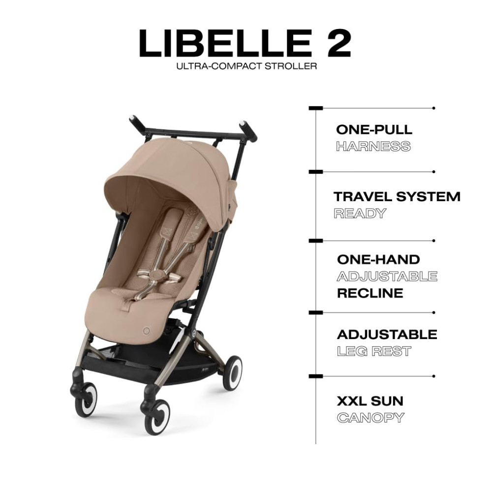 O carrinho de bebê ultracompacto Libelle da CYBEX é ideal para os pais que buscam praticidade em suas viagens diárias. Com uma das menores dobras do mundo, o Libelle se dobra em uma embalagem compacta e fácil de transportar em aviões, trens ou carros. Além disso, o carrinho é leve, pesando apenas 6,21 quilos, e possui um sistema de viagem pronto para fixar qualquer assento de carro infantil CYBEX à estrutura usando os adaptadores incluídos.