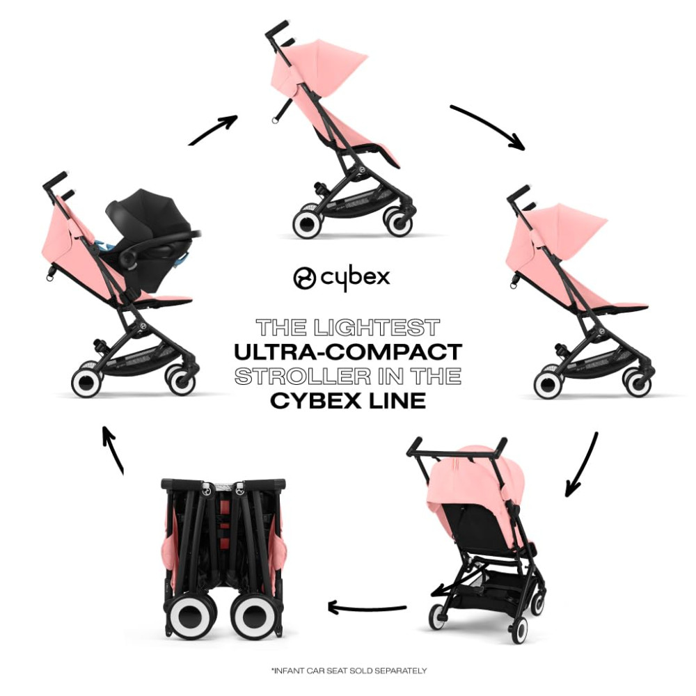 Carrinho de Bebê Ultracompacto com Suspensão Suave e Reclinação Ajustável com Uma Mão Cybex Libelle Rosa Claro