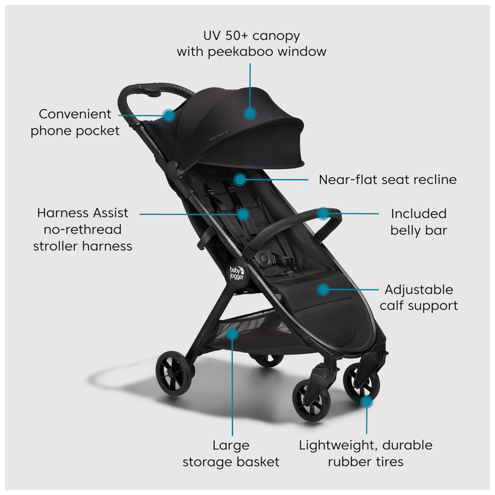 Carrinho de Bebê Ultracompacto com Trava Automática para Fácil Transporte e Armazenamento Baby Jogger City Tour 2 Preto