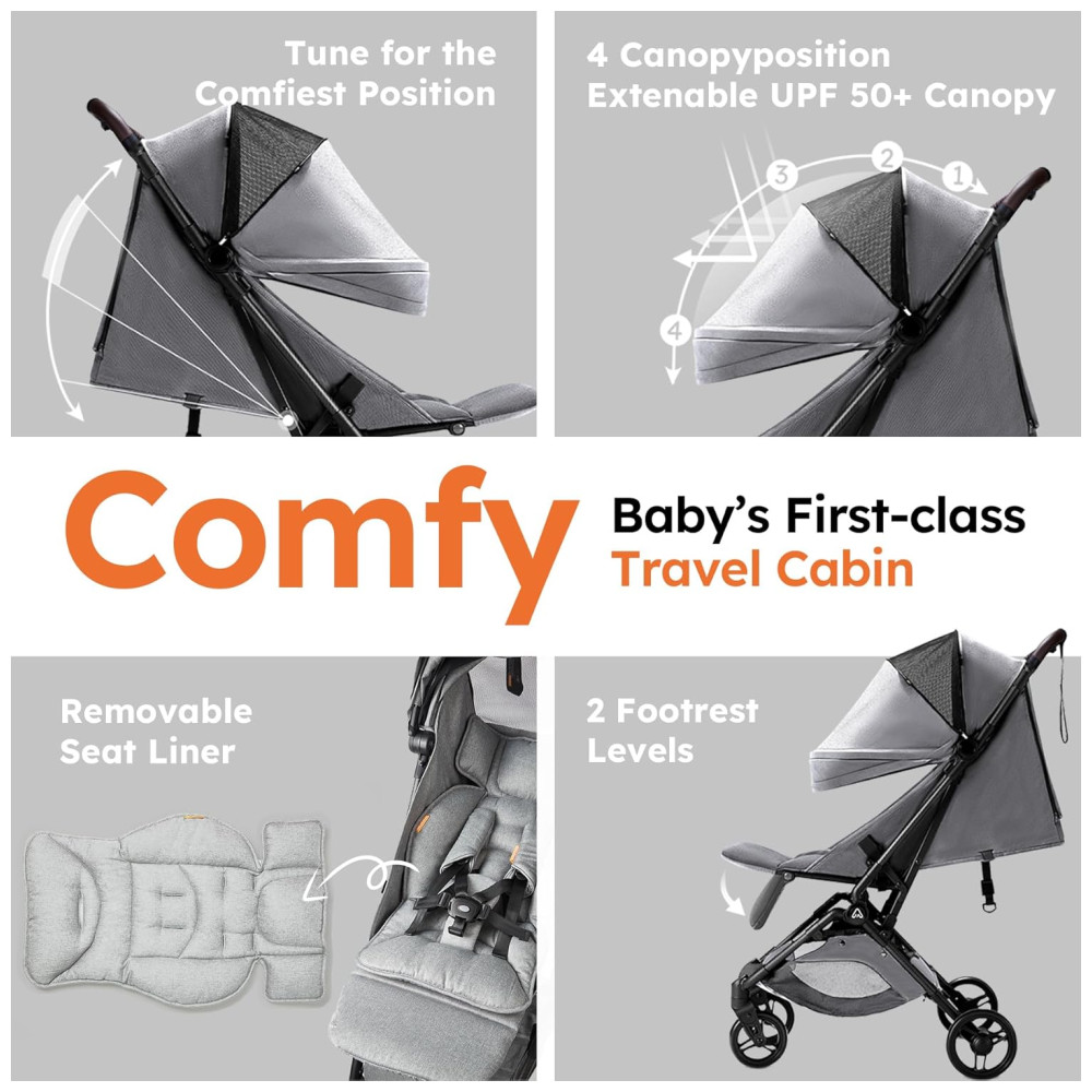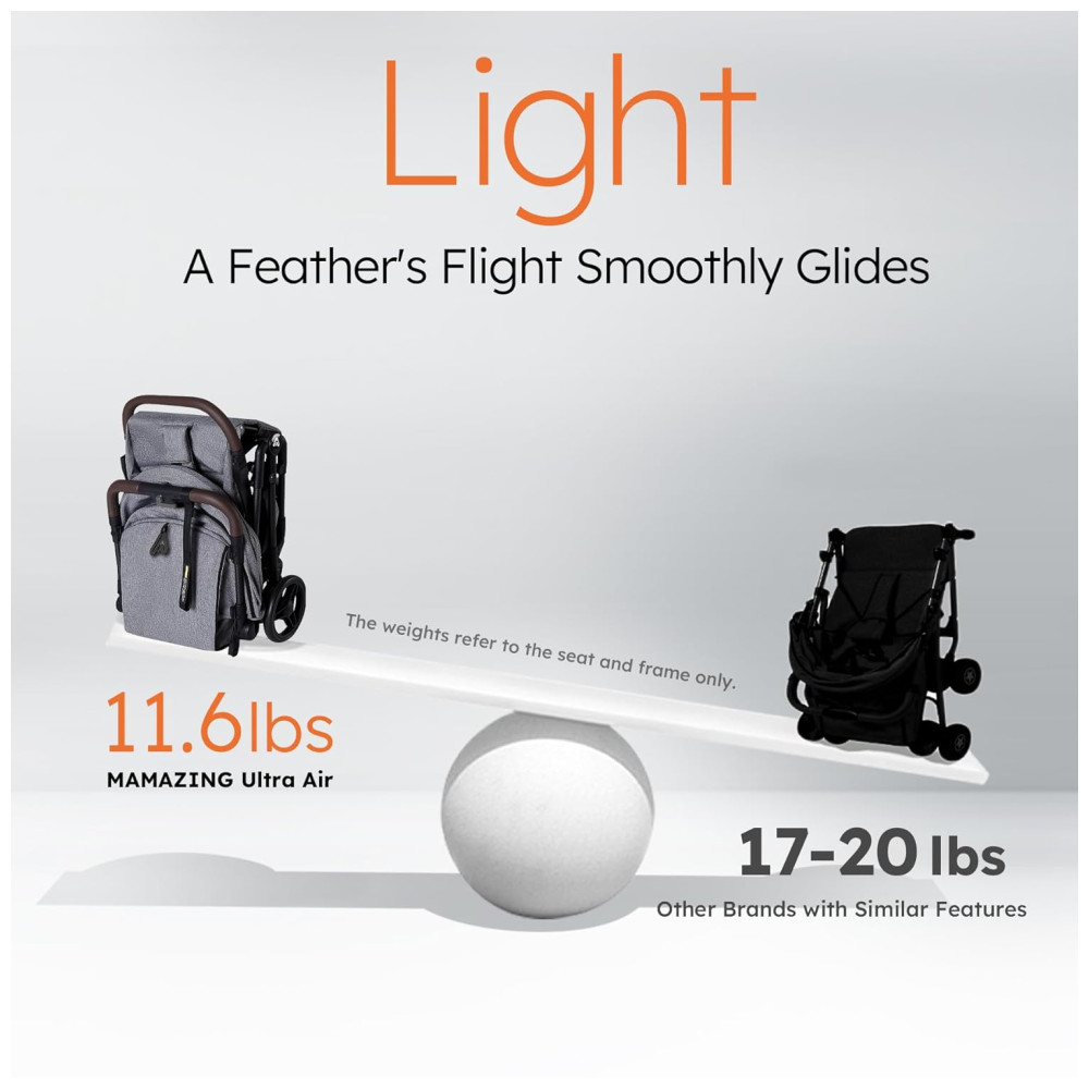 Carrinho de Bebê Ultraleve com Organizador e Almofada – Premiado Ouro Moms Choice Compacto Avião Dobrável com 120cm MAMAZING